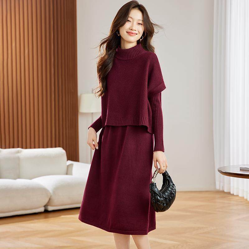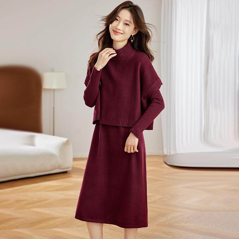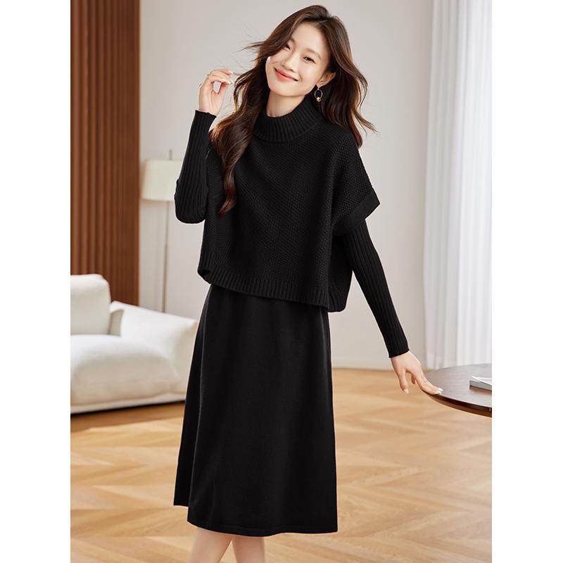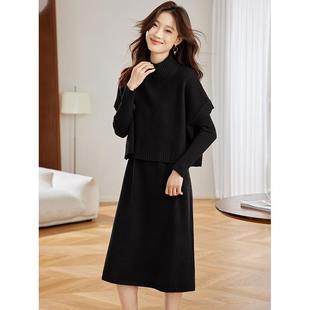 宽松慵懒风羊毛针织马甲套裙秋冬加厚纯色显瘦高级感名媛范毛衣裙
