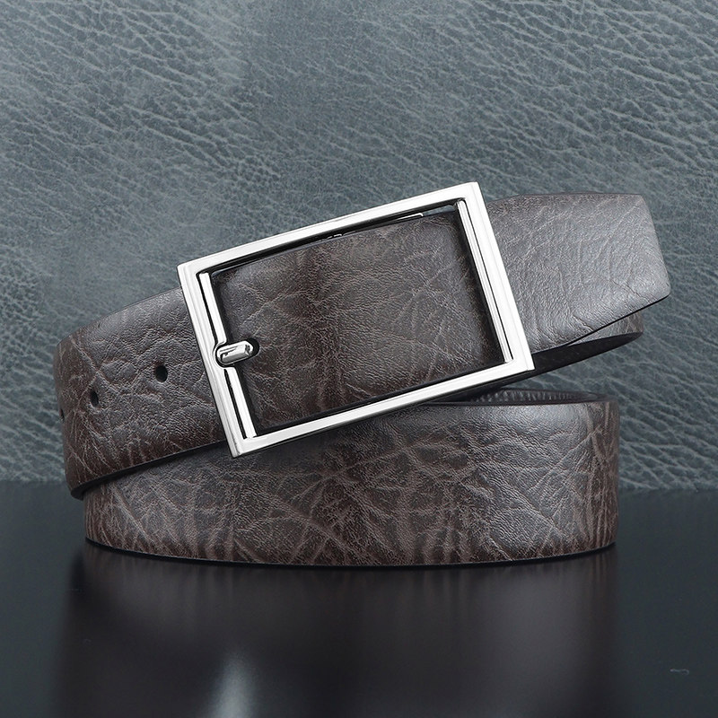 咖色棕色商务皮带男头层皮韩版 带 方形针扣腰带百搭青年西服结婚裤