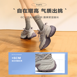 女款 厚底加绒增高休闲运动鞋 2025爆款 新款 秋冬季 达芙妮灰色老爹鞋