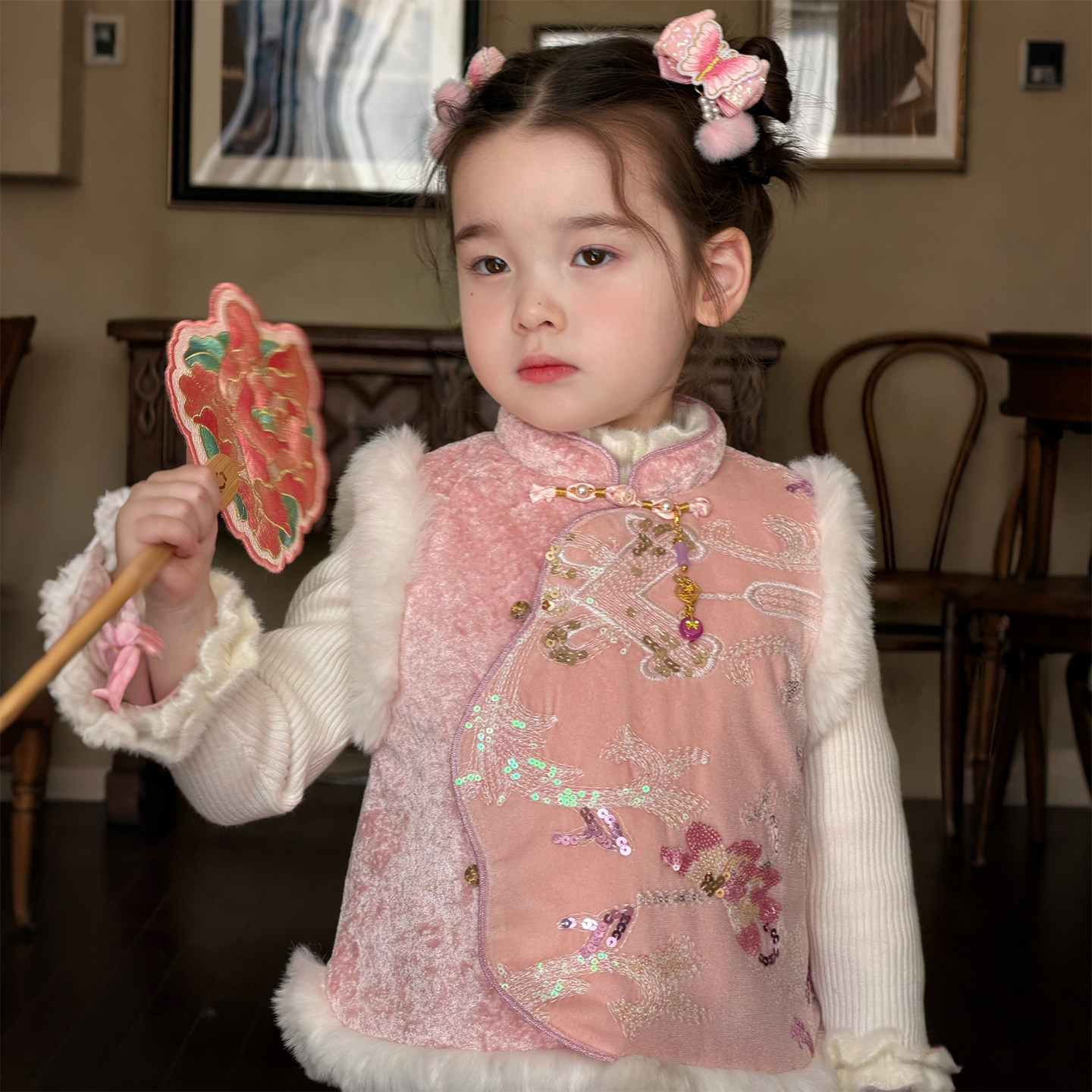 2873 上衣两件套装 秋冬穿搭女新款 宽松复古背心马甲学院风衬衫