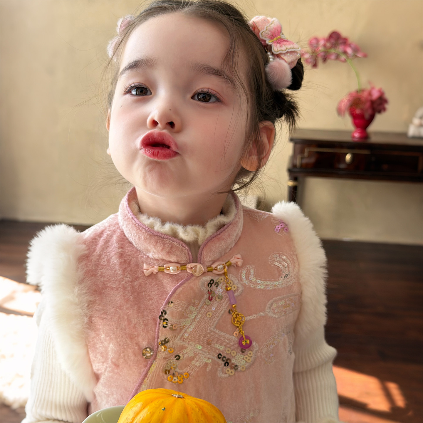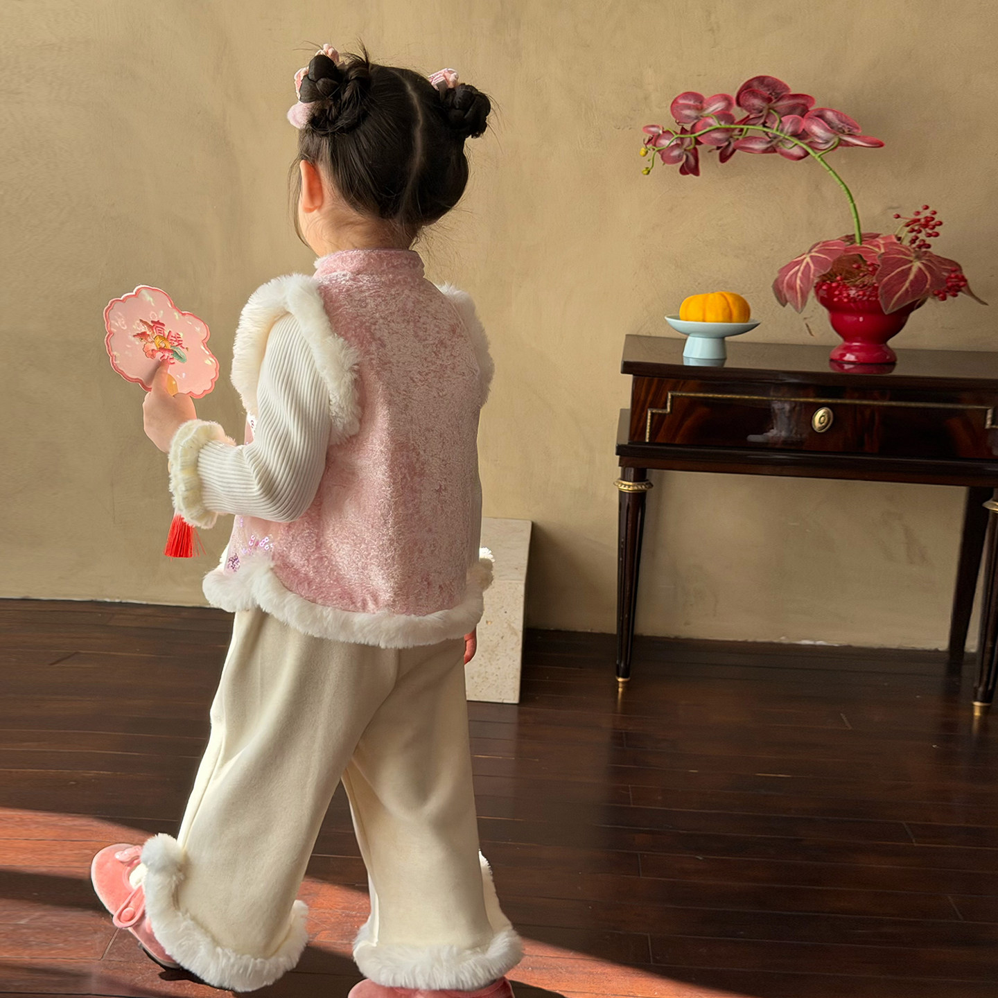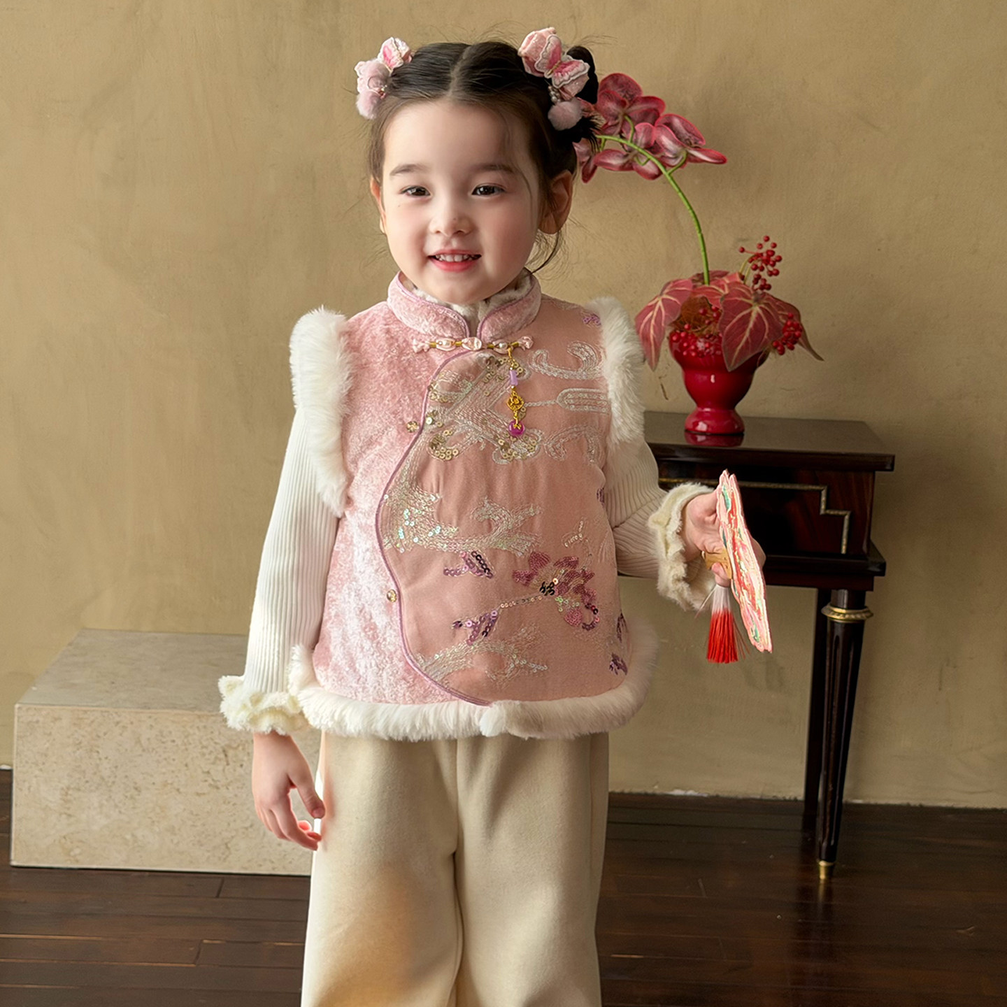 慵懒风宽松套装 套组女微胖大码 kt刺绣毛领卫衣外套长裤 安妮不火