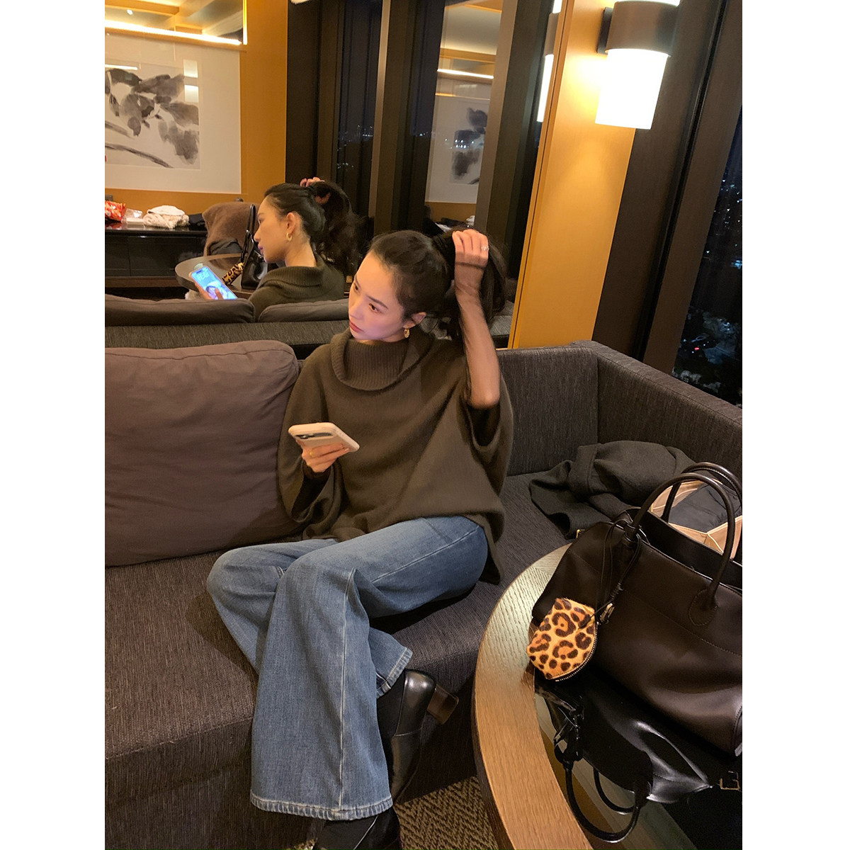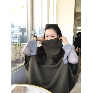 柔软山羊绒混纺自然高领斗篷式 慵懒蝙蝠袖 针织毛衣 isaro