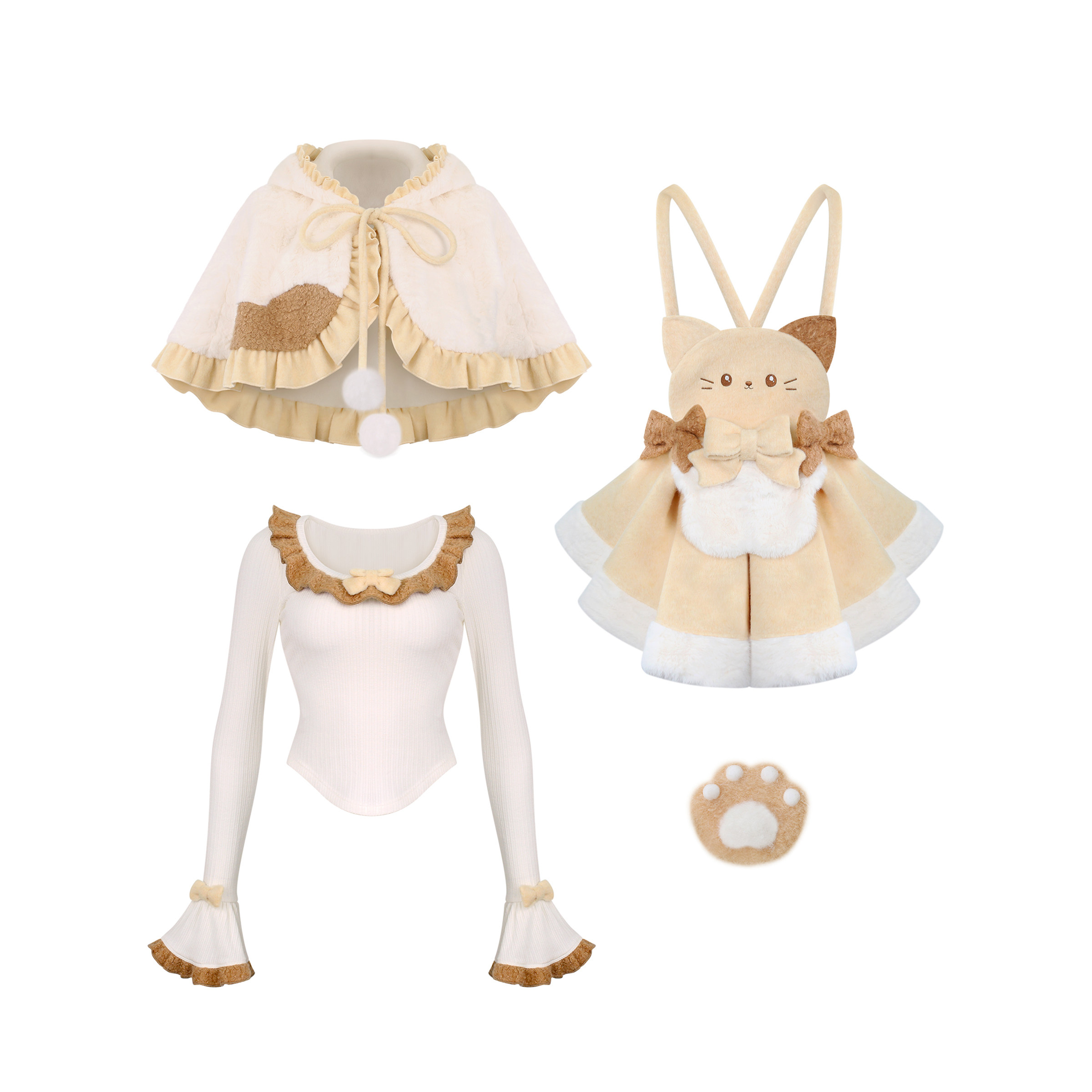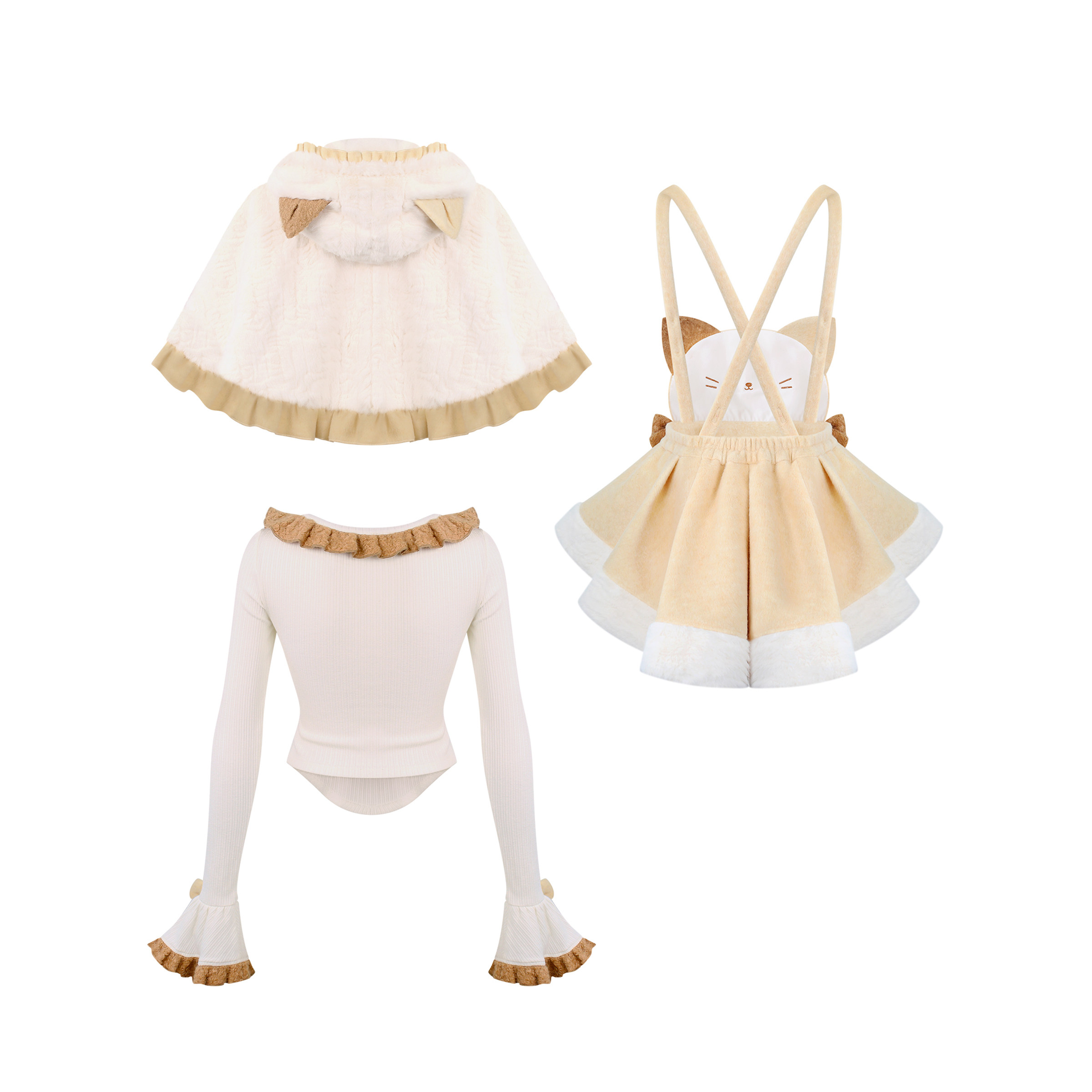 春季 三花小猫 针织上衣 小猫背带裙 少女椰子 斗篷套装 角色系
