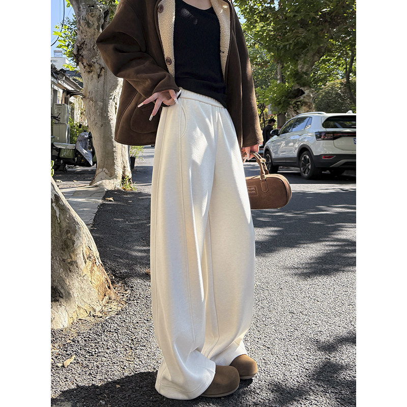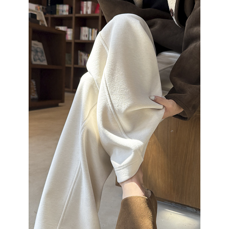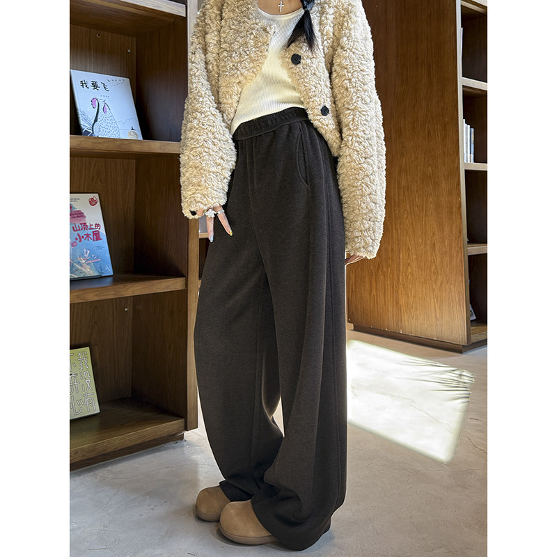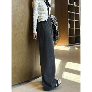 直筒裤 灰色加绒羊毛阔腿裤 醋酸弯刀裤 卫裤 子女秋冬高腰垂感糯米裤