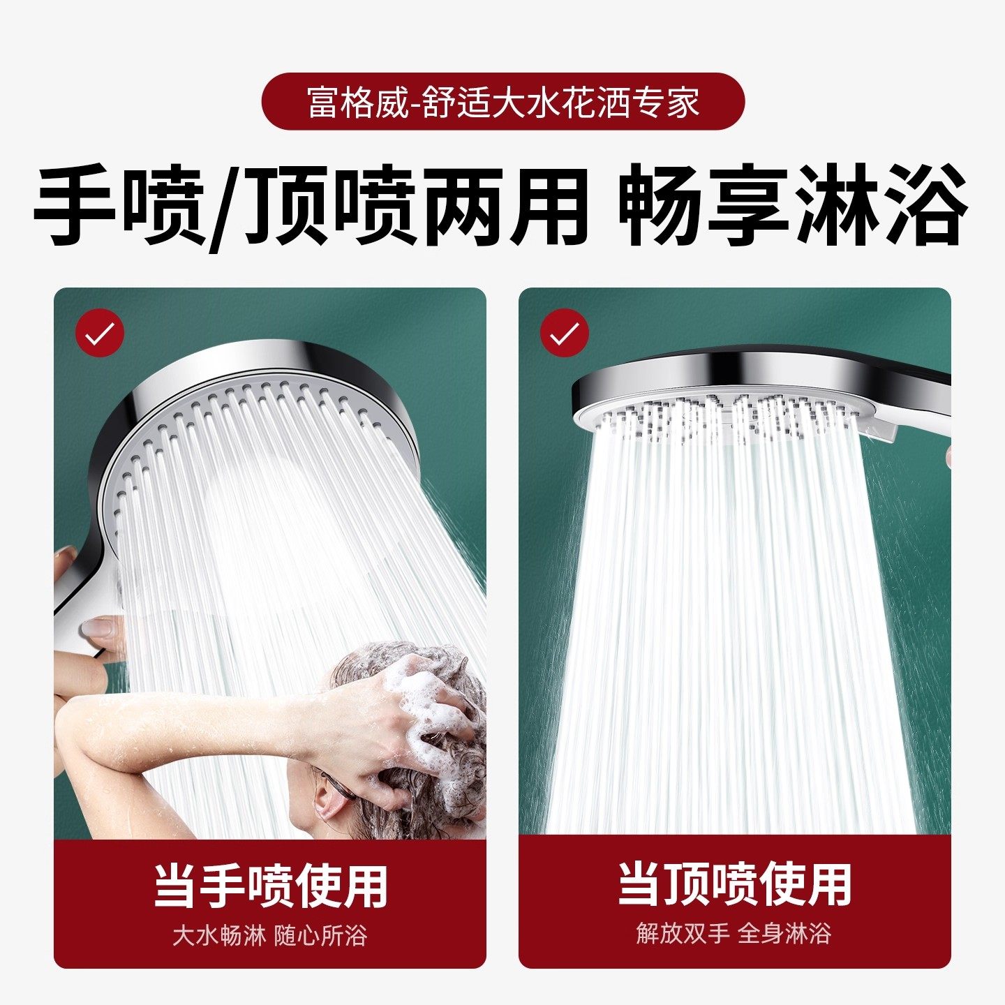 超强增压花洒喷头套装 淋浴软管家用淋雨浴霸热水器洗澡莲蓬头全套