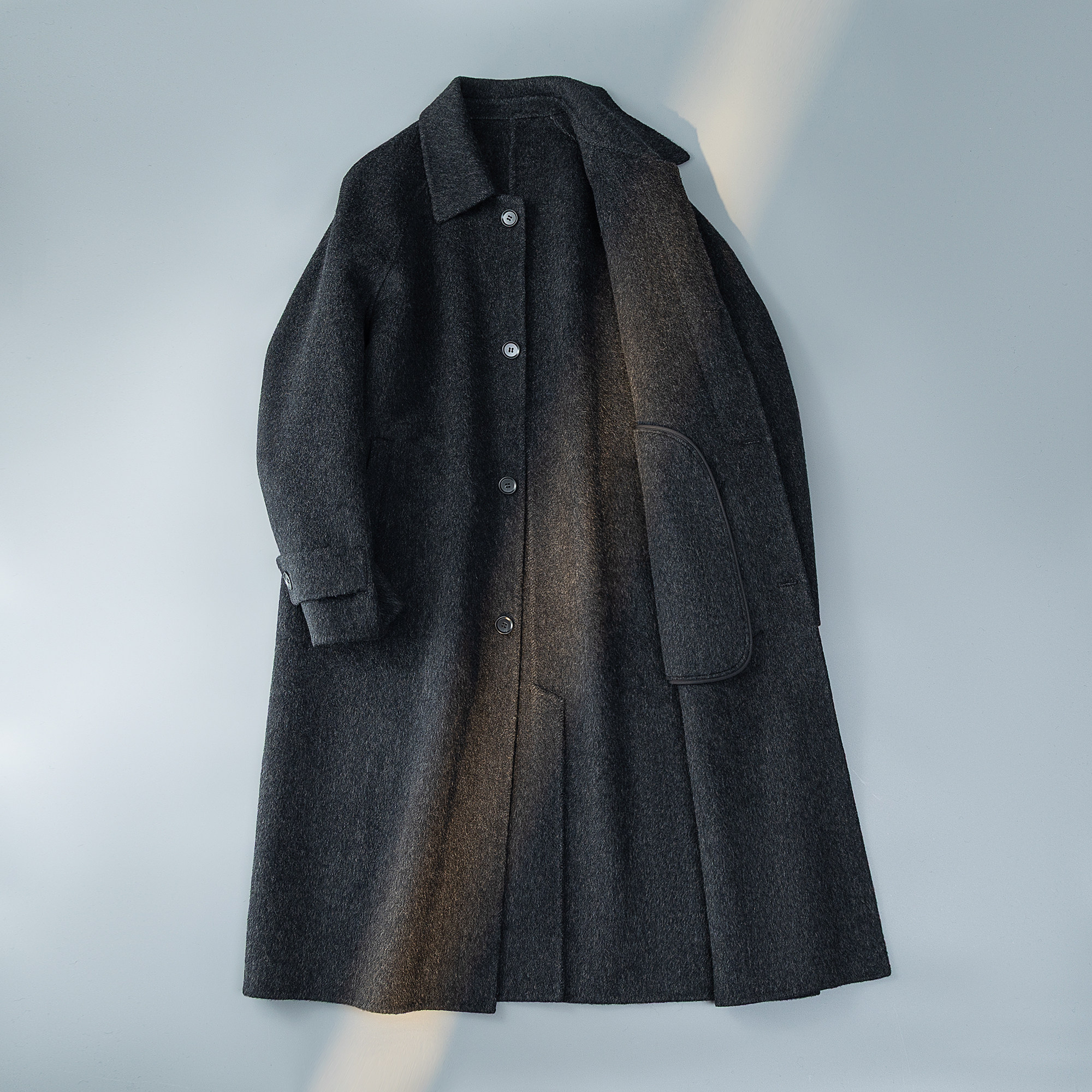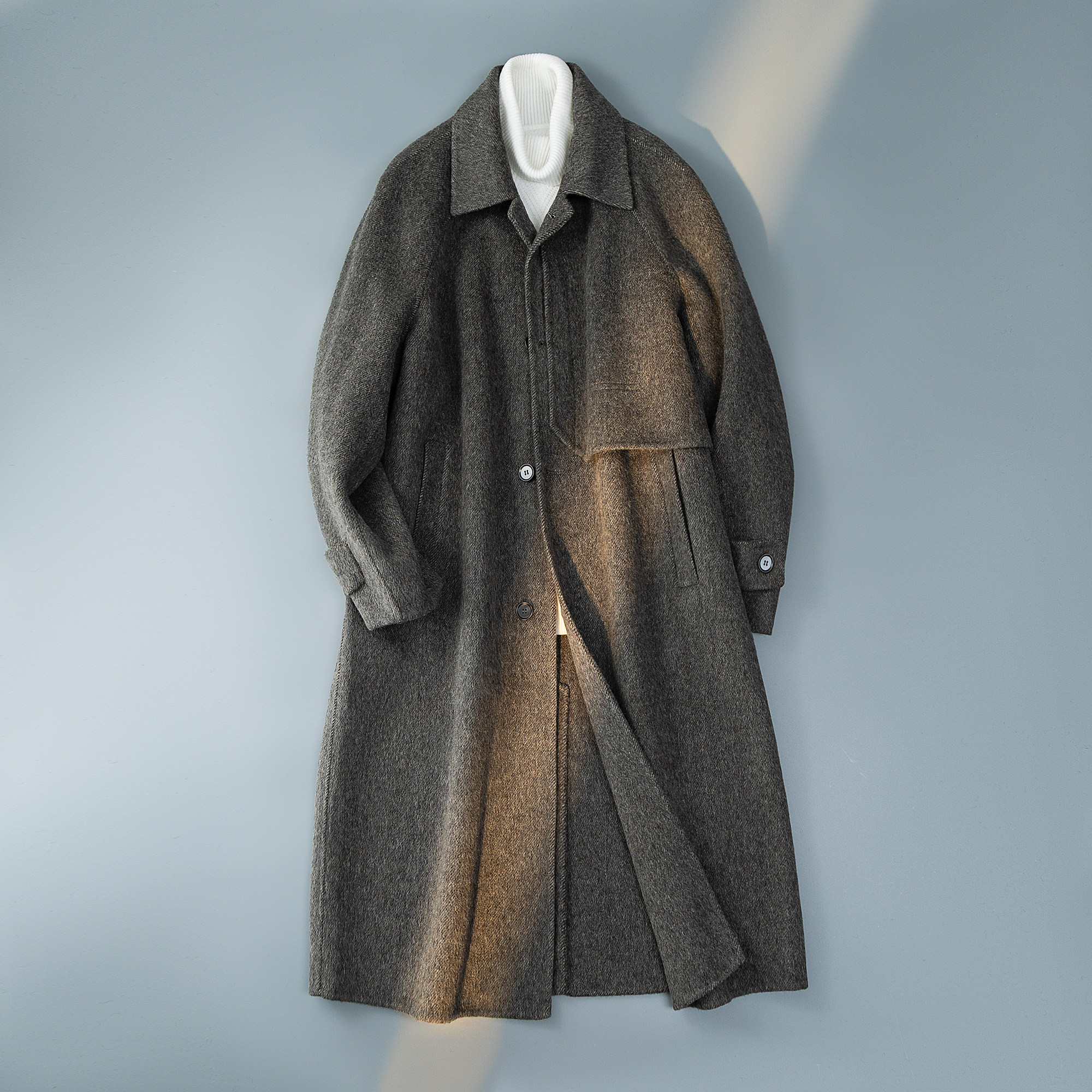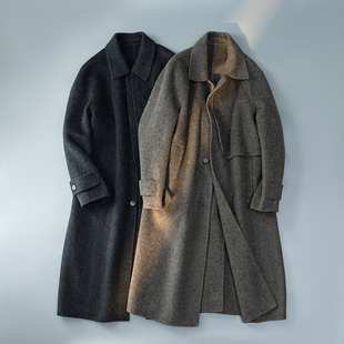 西装 过膝双面羊绒外套 领毛呢子风衣 中长款 纯羊毛双面呢大衣男士