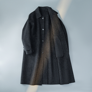 慵懒风双面羊毛大衣女中长款 灰色毛呢外套高级感