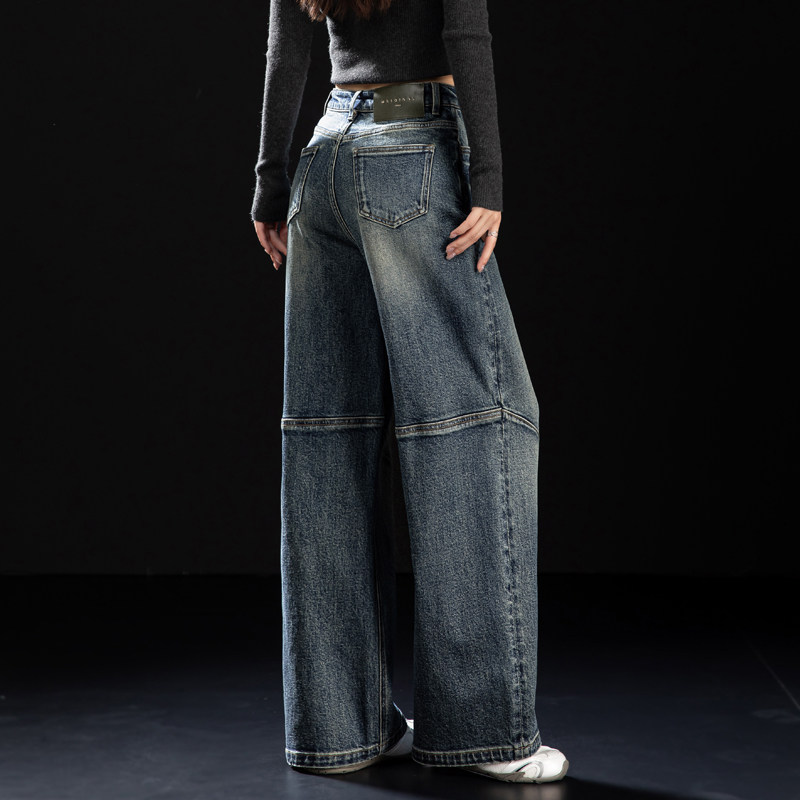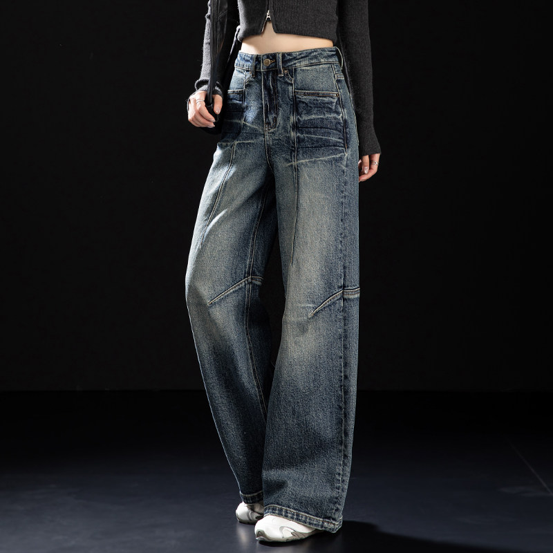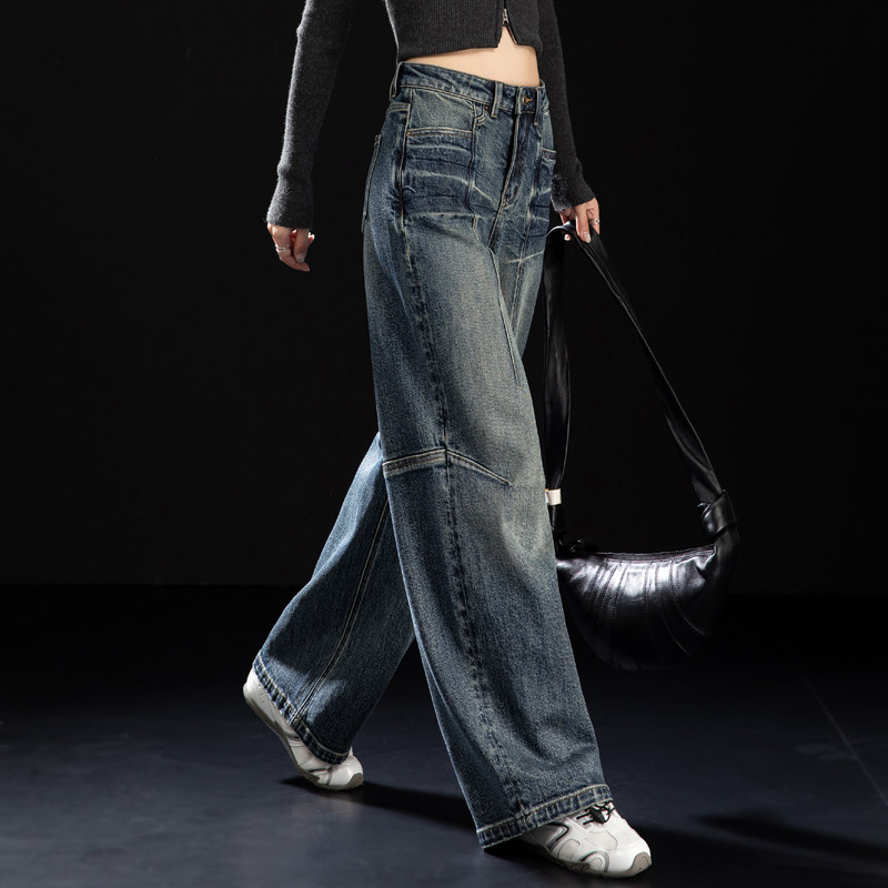 2025新款 子蓝色阔腿镰刀裤 秋冬季 型好看裤 设计感版 女士弯刀牛仔裤