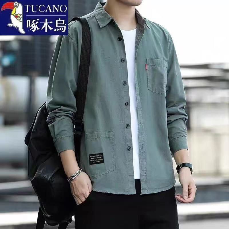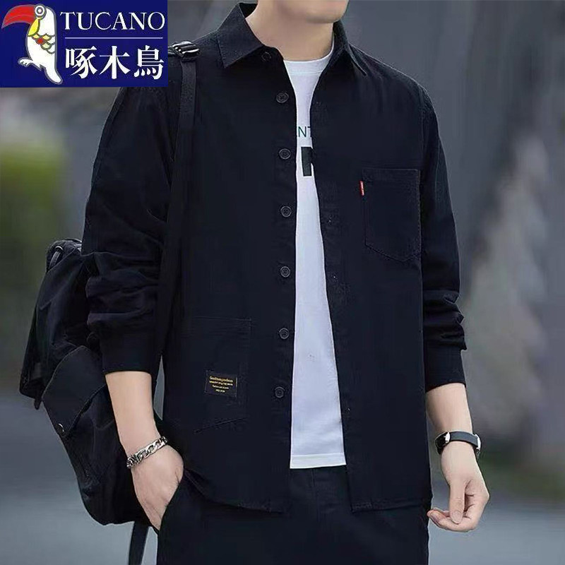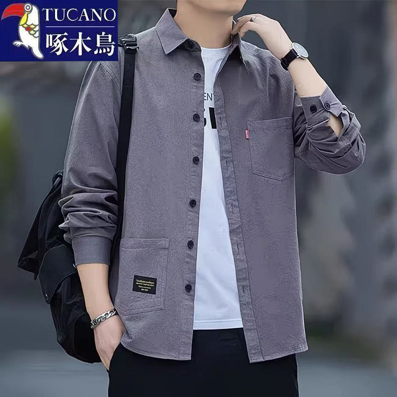男士 百搭衬衫 高档纯色商务休闲宽松外套上衣 翻领时尚 啄木鸟春秋季