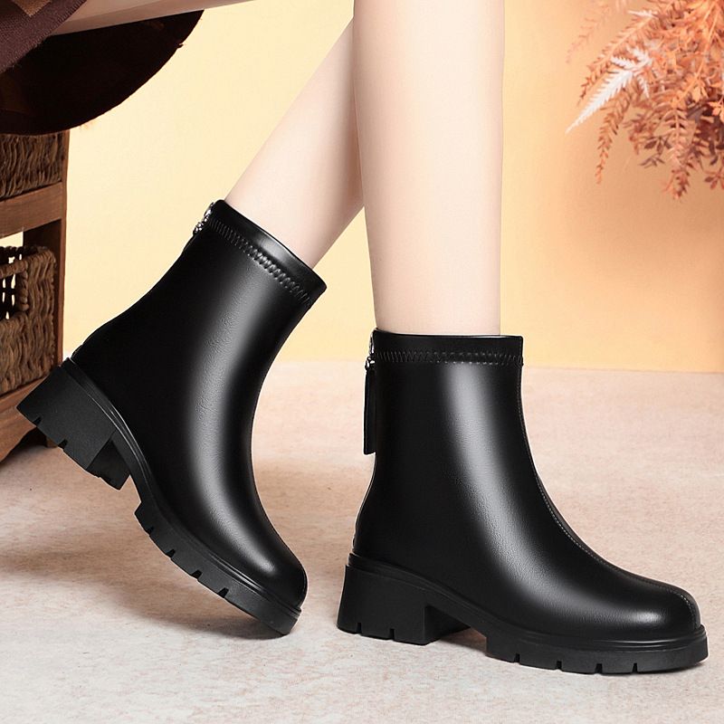 马丁靴中筒靴子软皮羊毛女冬季 厚底雪地靴 加绒加厚棉靴东北大棉鞋