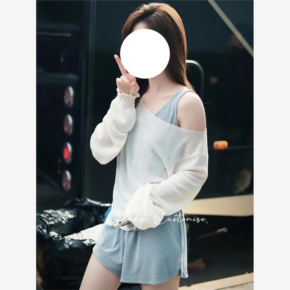 温柔风秋冬 女罩衫 许我耀眼许妍赵露思同款 雾蓝紫运动瑜伽连体短裤