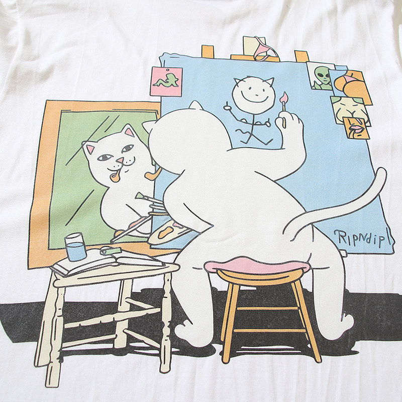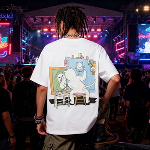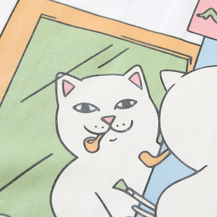 美国潮牌RIPNDIP贱猫中指猫纯棉短袖 T恤搞怪画家猫卡通男女情侣款