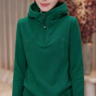 加厚双面德绒半拉链连帽卫衣女2026早春新款 简约休闲百搭显瘦帽衫