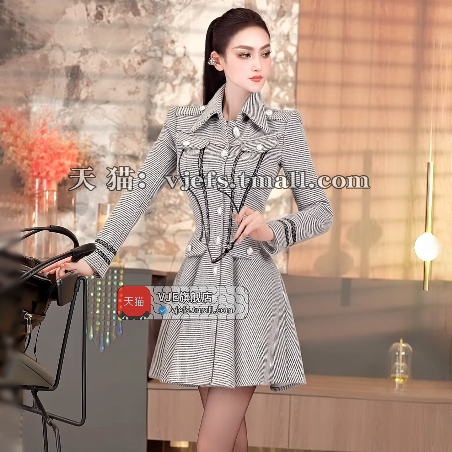 高级感西装 3ts 秋冬1oo羊毛毛呢外套立领中长款 呢子大衣女