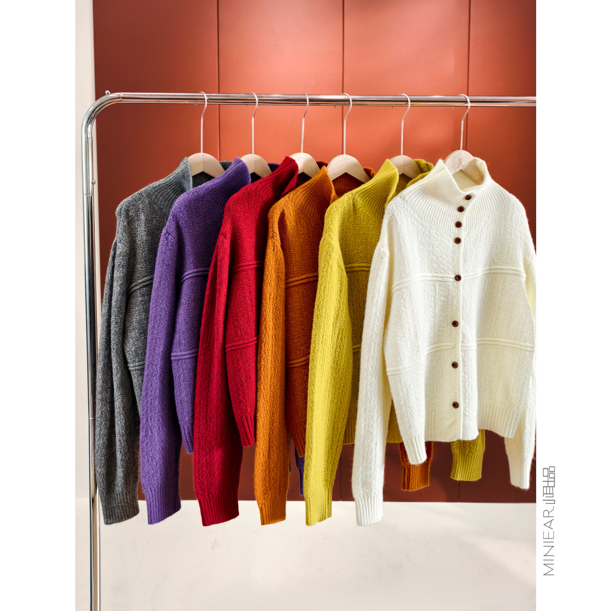 重工 坑条高领显瘦针织开衫 双织法 立体裁条 肌理缩呢 小耳出品