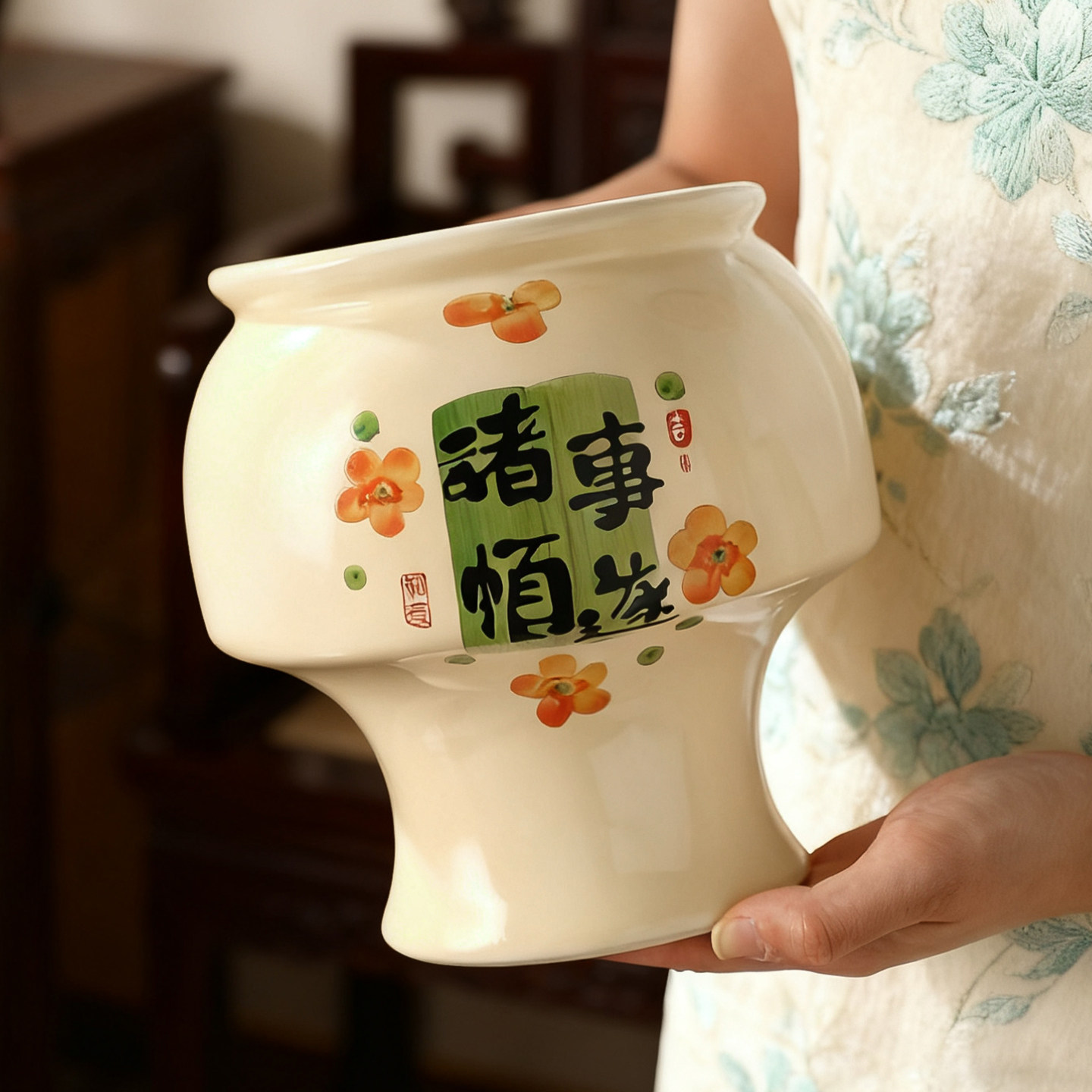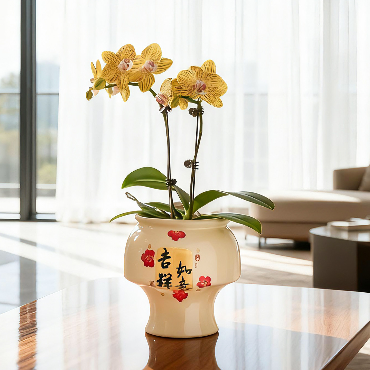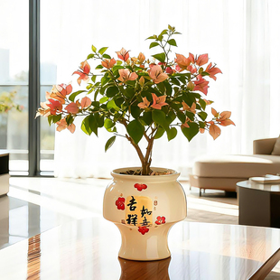 轻奢中式 陶瓷花盆现代简约手绘家用高脚蝴蝶兰三角梅专用花卉套盆