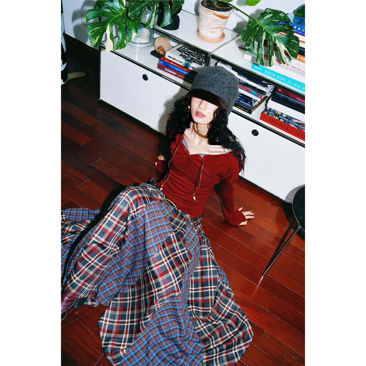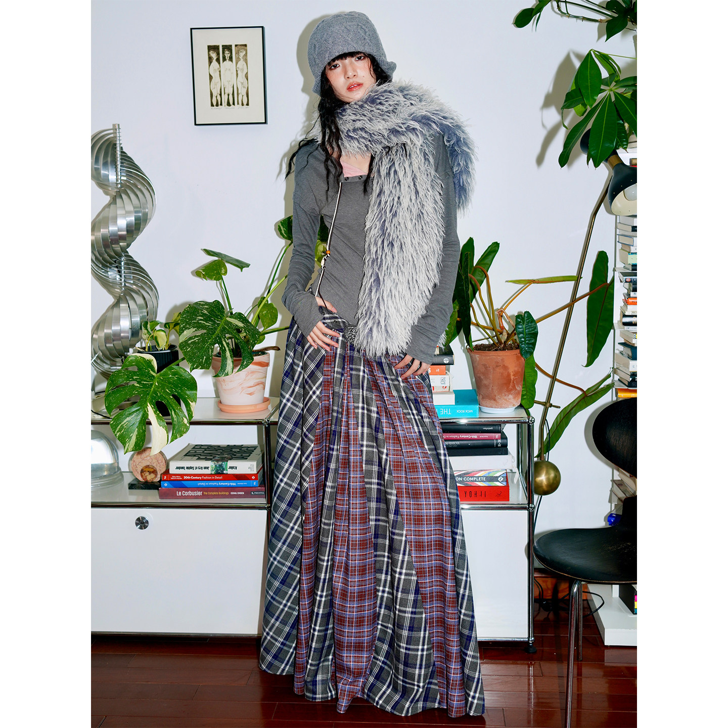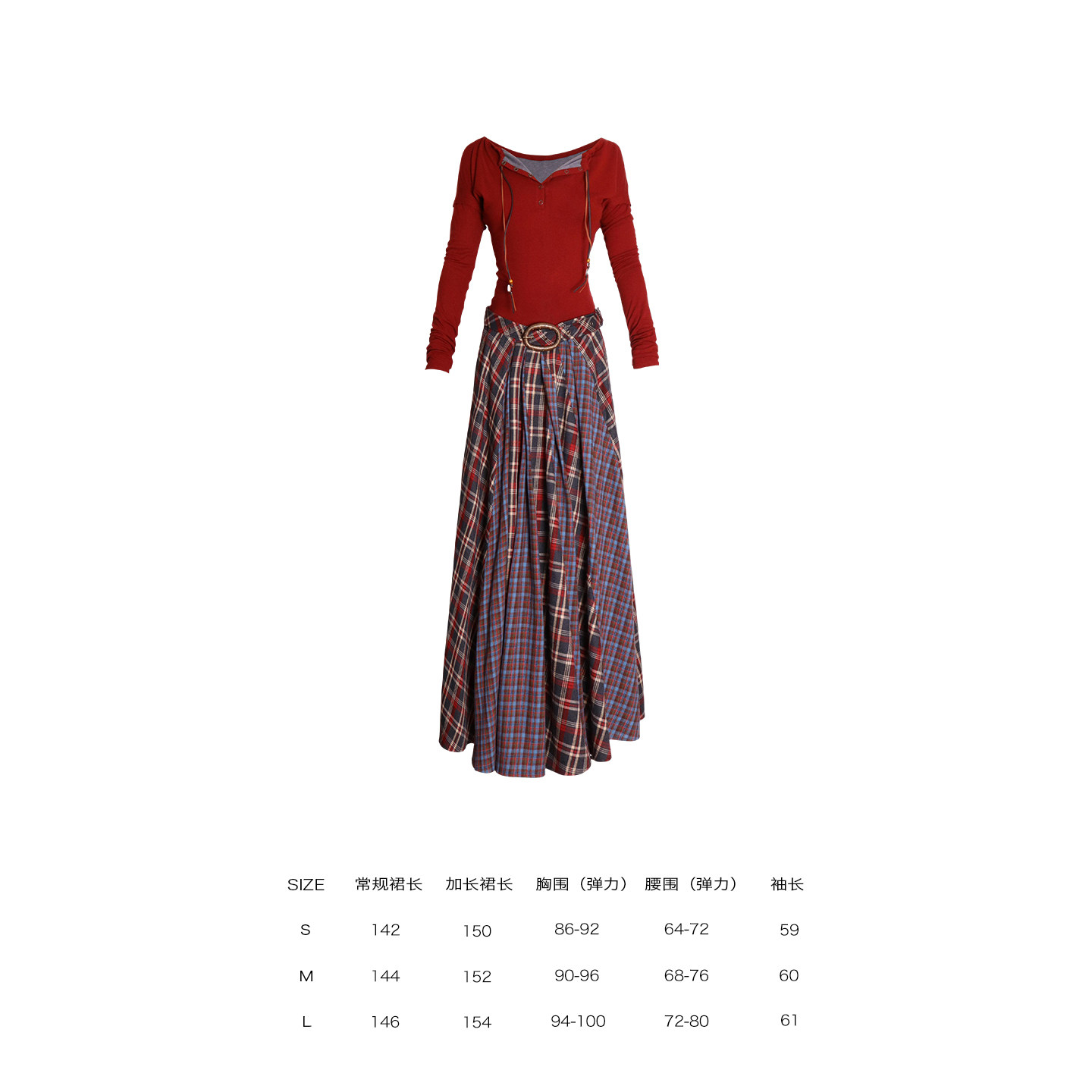 坏品味西部 连衣裙女 秋冬撞色拼接格纹羊毛混纺长袖
