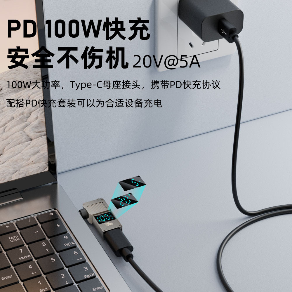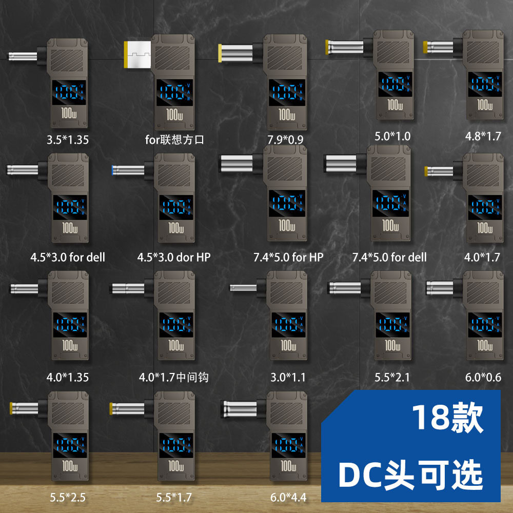 PD诱骗笔记本充电转接头TYPE C转DC圆口数显转接器适用于联想电脑