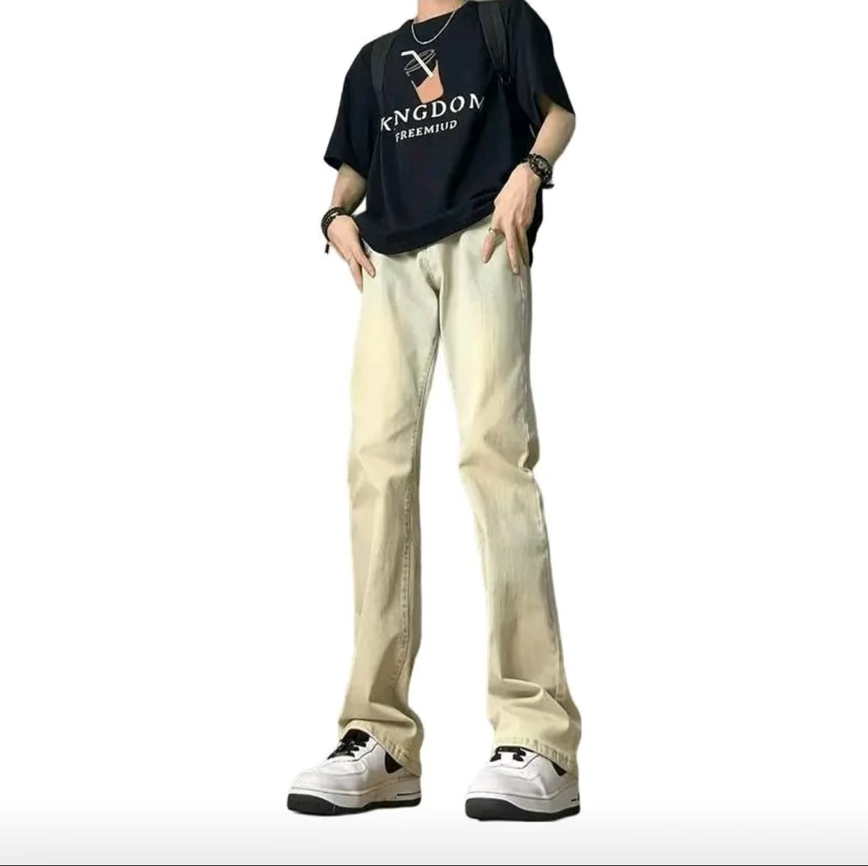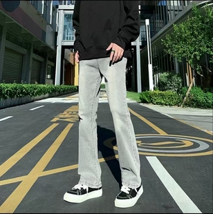 潮 阔腿直筒裤 猫猫家加长牛仔裤 女加绒加厚高腰复古水泥黄宽松窄版