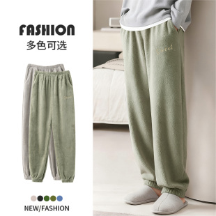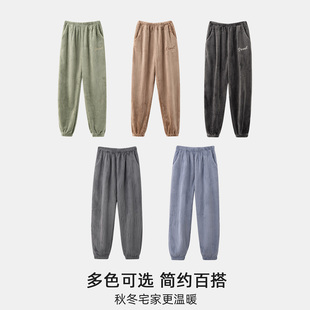 束脚加绒家居宽松裤 法兰绒睡裤 珊瑚绒外穿毛绒暖暖裤 男士 子 女冬季