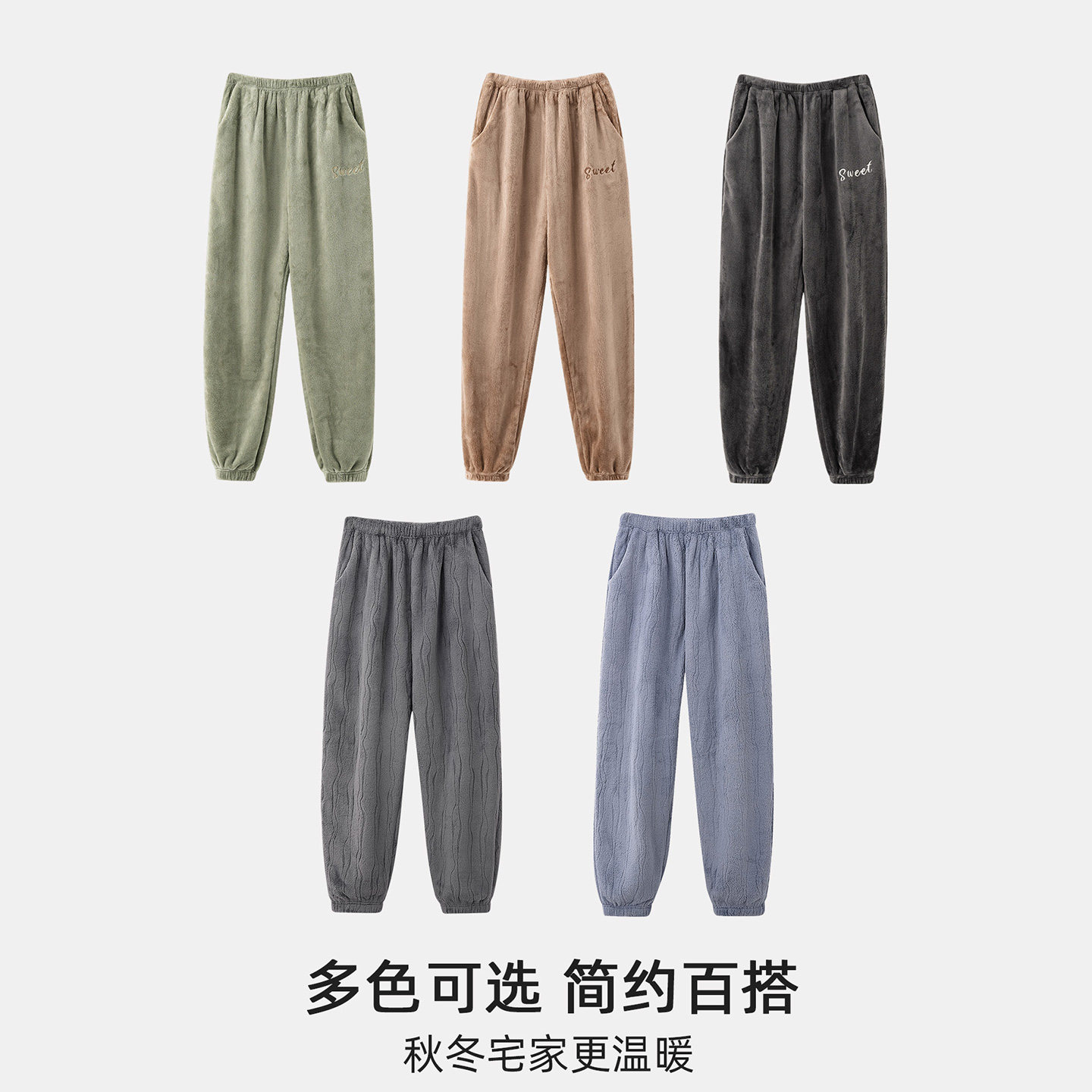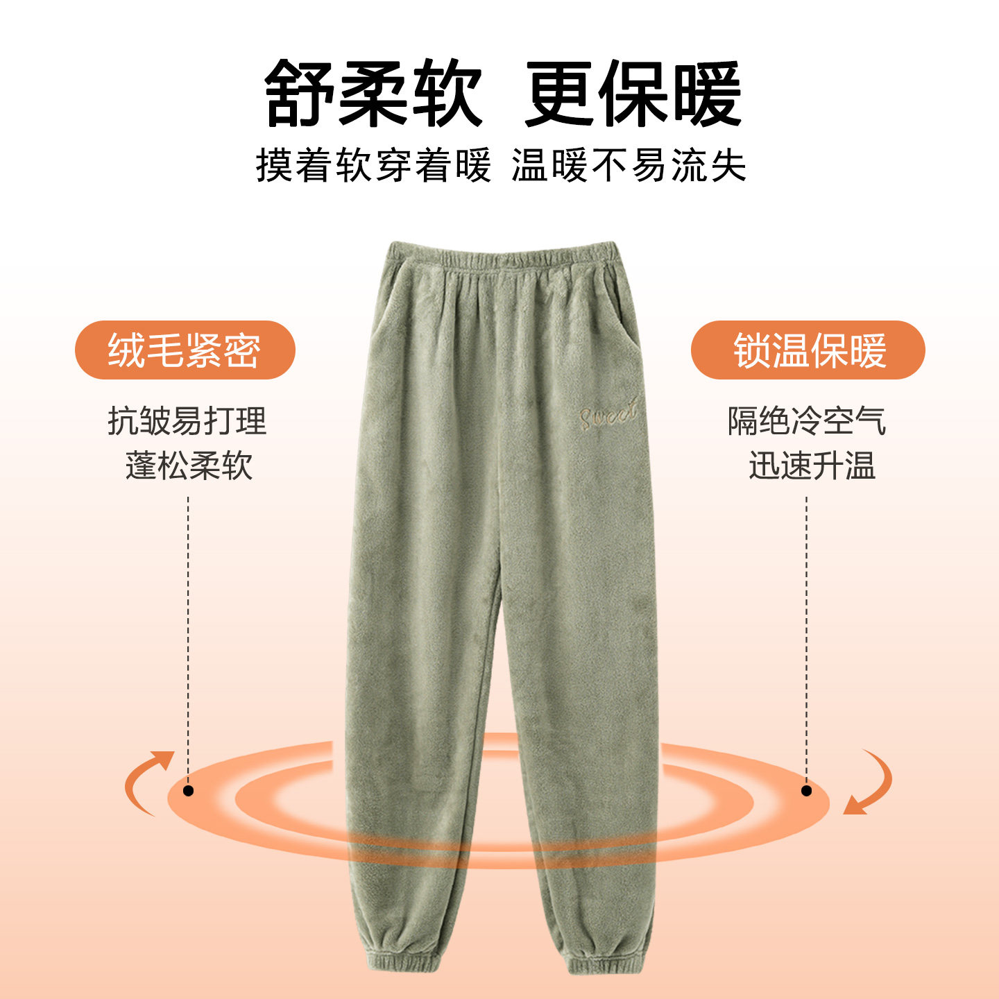 裤 睡裤 珊瑚绒冬季 直筒散口宽松大码 子 女秋冬加厚特厚法兰绒长裤