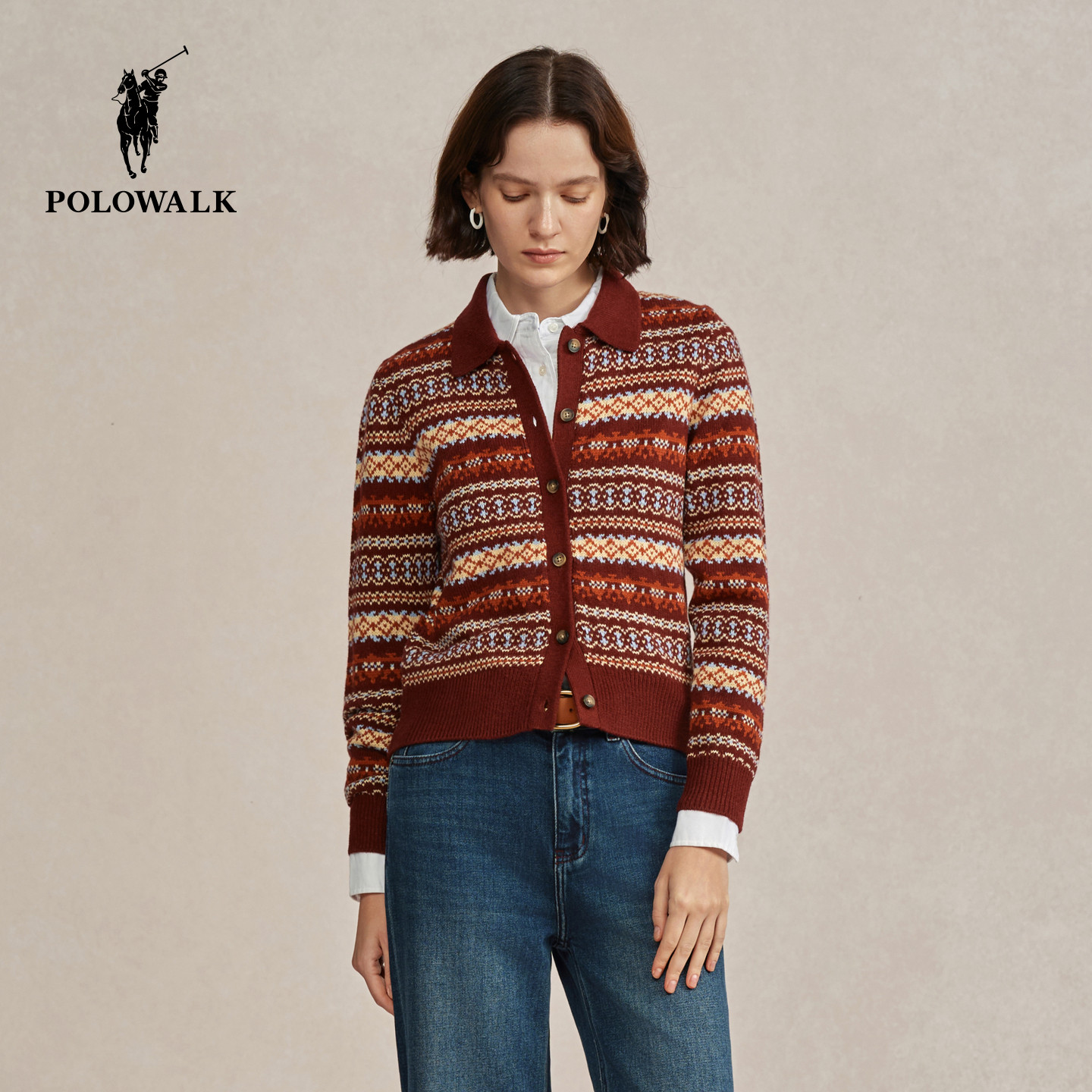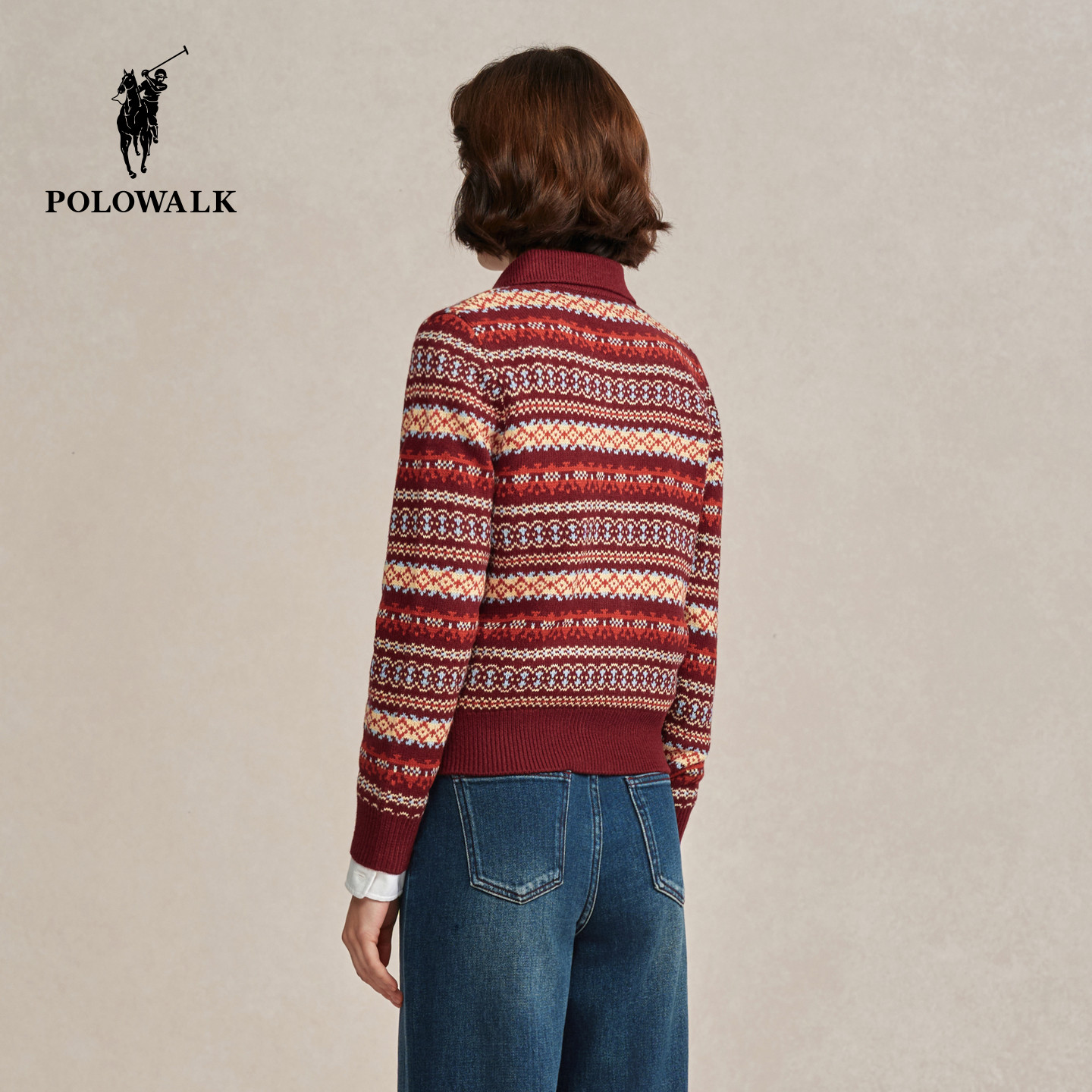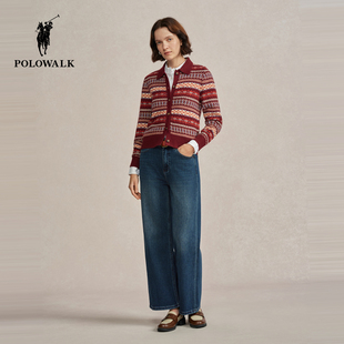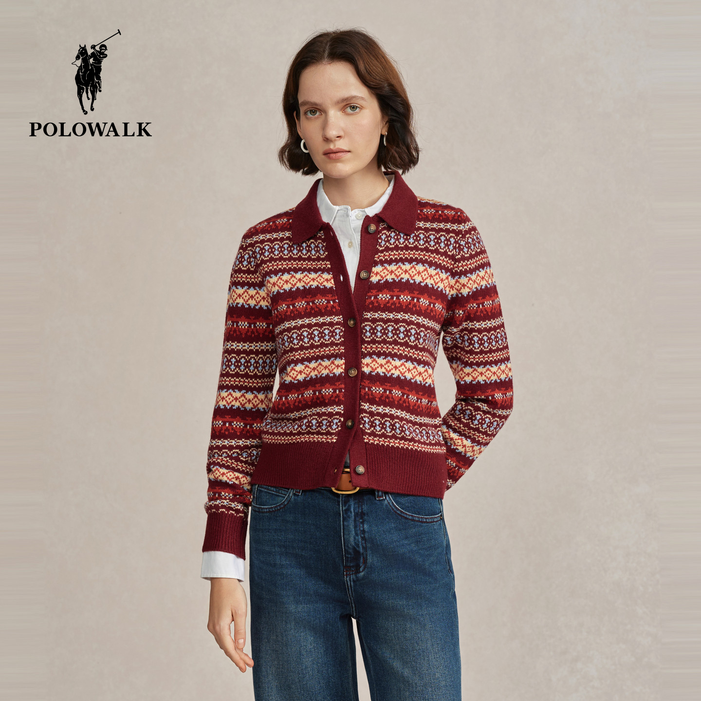 2025秋季 针织衫 新品 红色圣诞针织提花长袖 POLOWALK女式 开衫 长袖