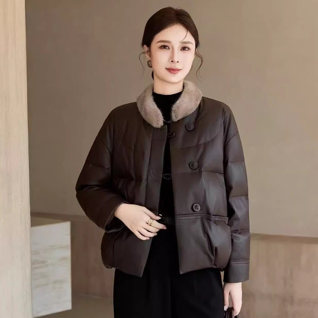 2025新女秋冬立领PU皮衣女短款 宽松显瘦拉链夹克外套鹅绒羽绒内胆