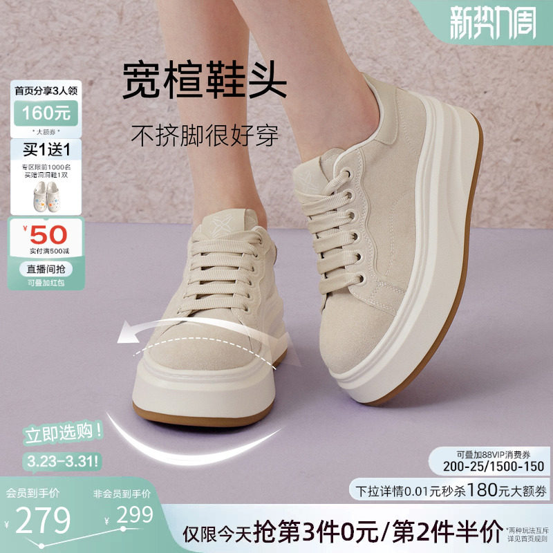 新款 休闲鞋 厚底增高板鞋 女运动鞋 D3827AM6 松糕鞋 百思图2026春季
