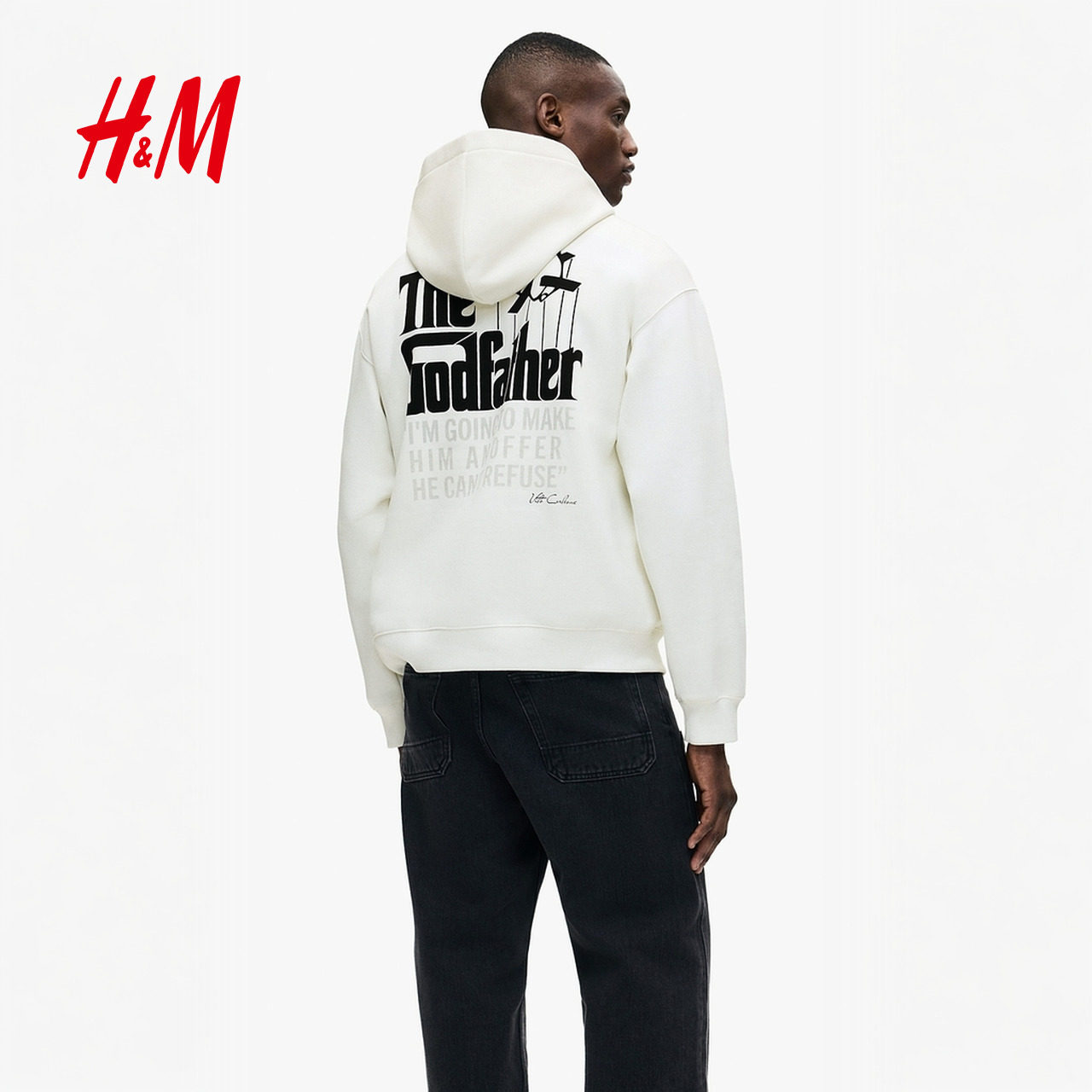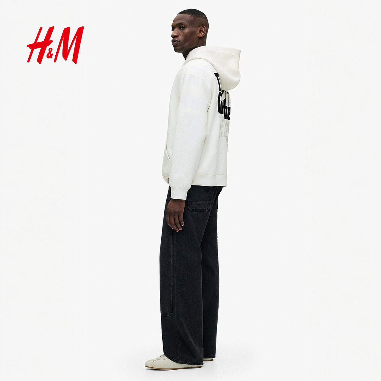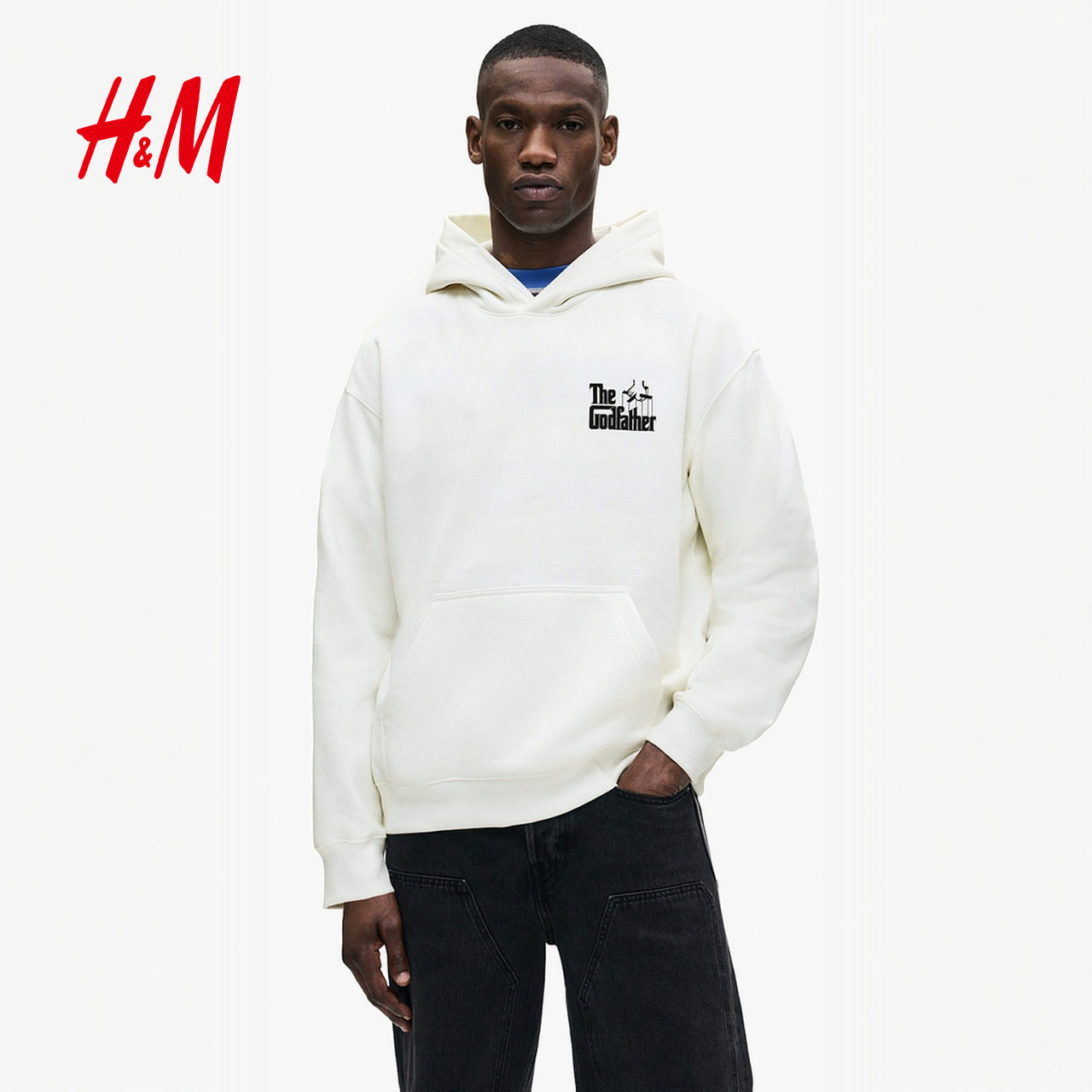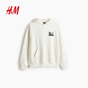 女装 打底衫 卫衣2025新款 型保暖印花连帽衫 1306773 宽松版 HM男装