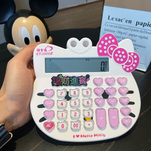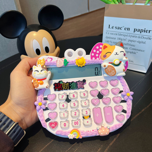超萌粉色语音办公卡通计算器女生可爱招财猫开店摆摊韩版 学生商用
