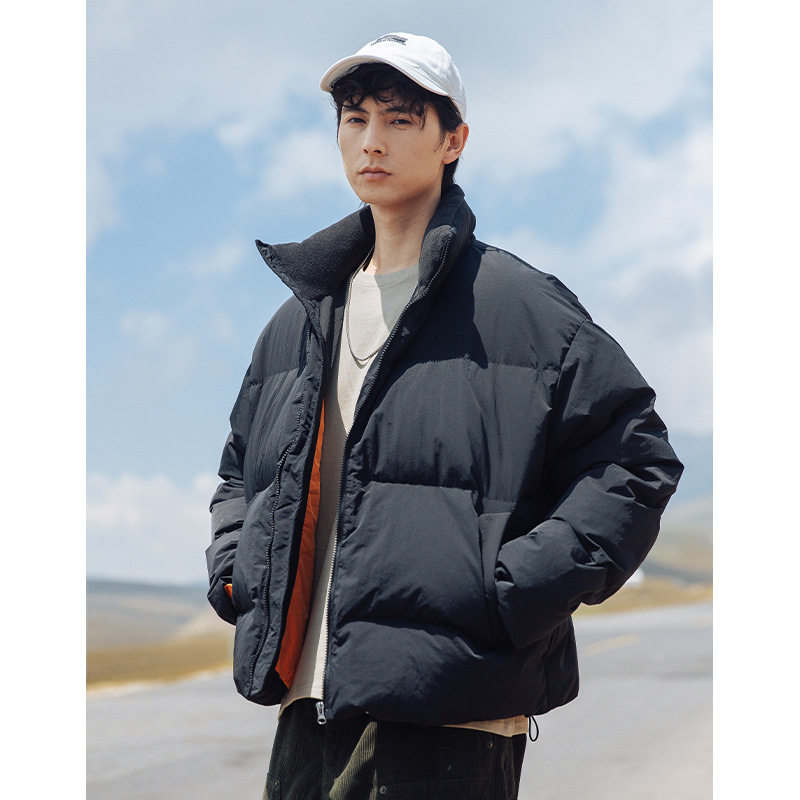 90绒立领加厚羽绒服2025冬季 摇粒绒拼接设计防风面包服外套 新款