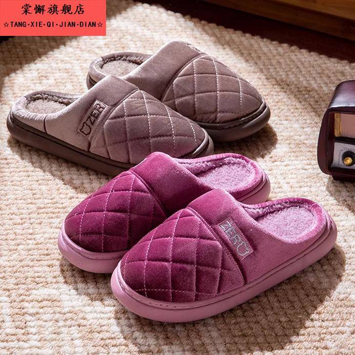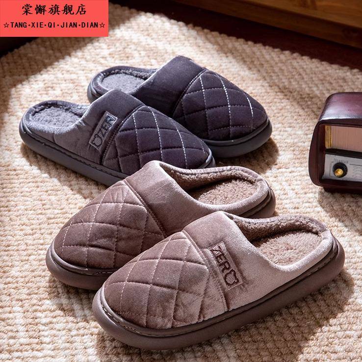 男秋天 加绒保暖防滑厚底情侣家居室内毛毛拖鞋 老人棉拖鞋 女士冬季