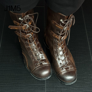 靴加绒短靴 粗跟英伦风时装 卓诗尼厚底马丁靴女骑士靴秋冬季 新款
