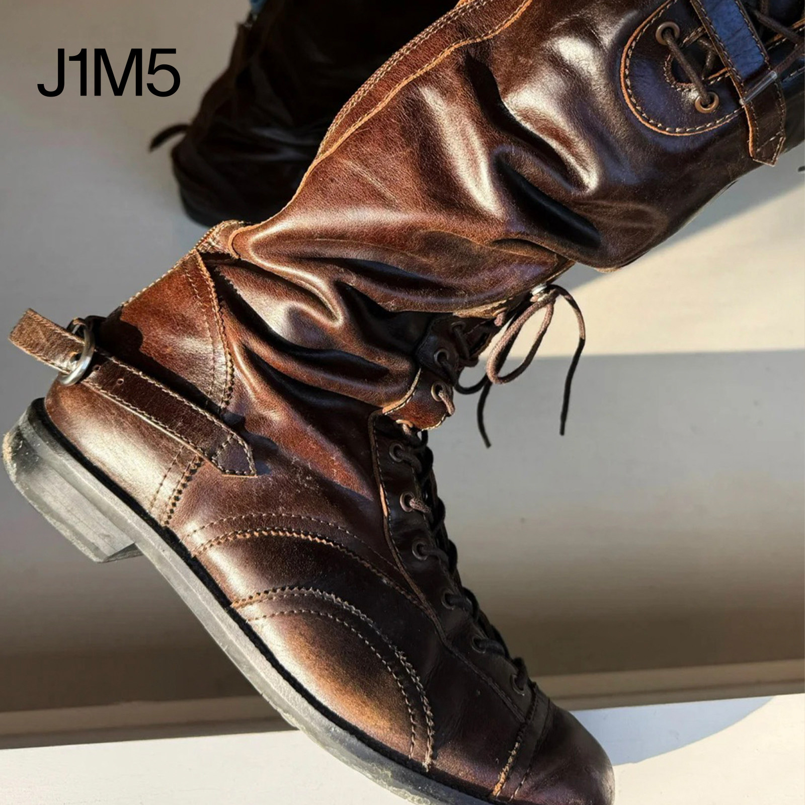 靴皮靴 时装 吴宣仪天美意千金靴复古厚底骑士靴加绒长靴女鞋 子新款