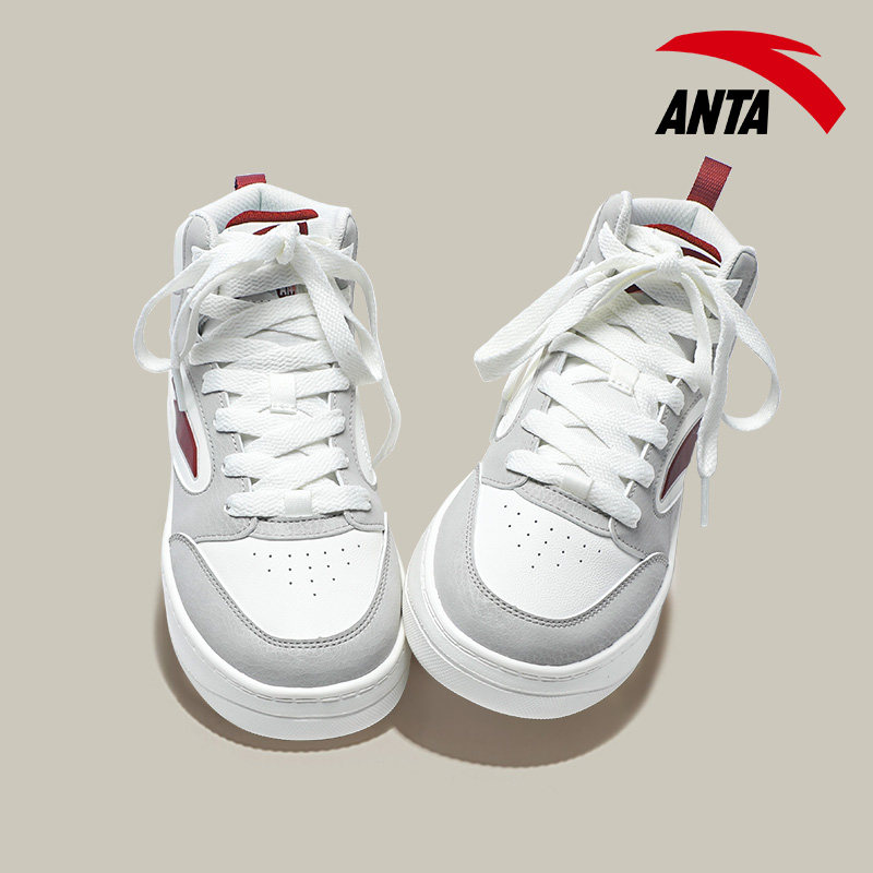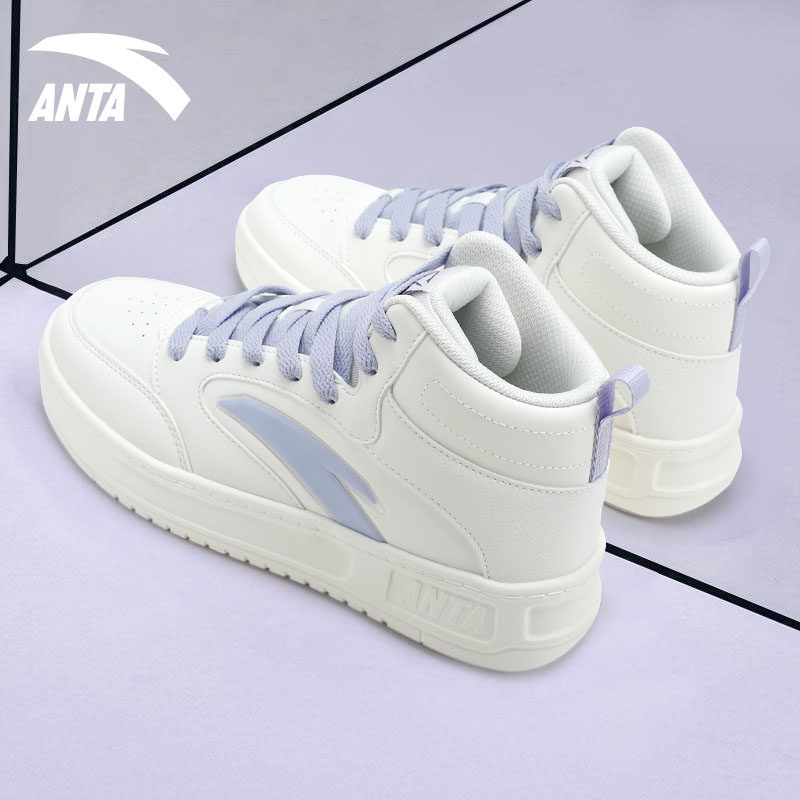 百搭运动休闲鞋 保暖厚底2025秋冬新款 女高帮复古皮面冬季 安踏板鞋