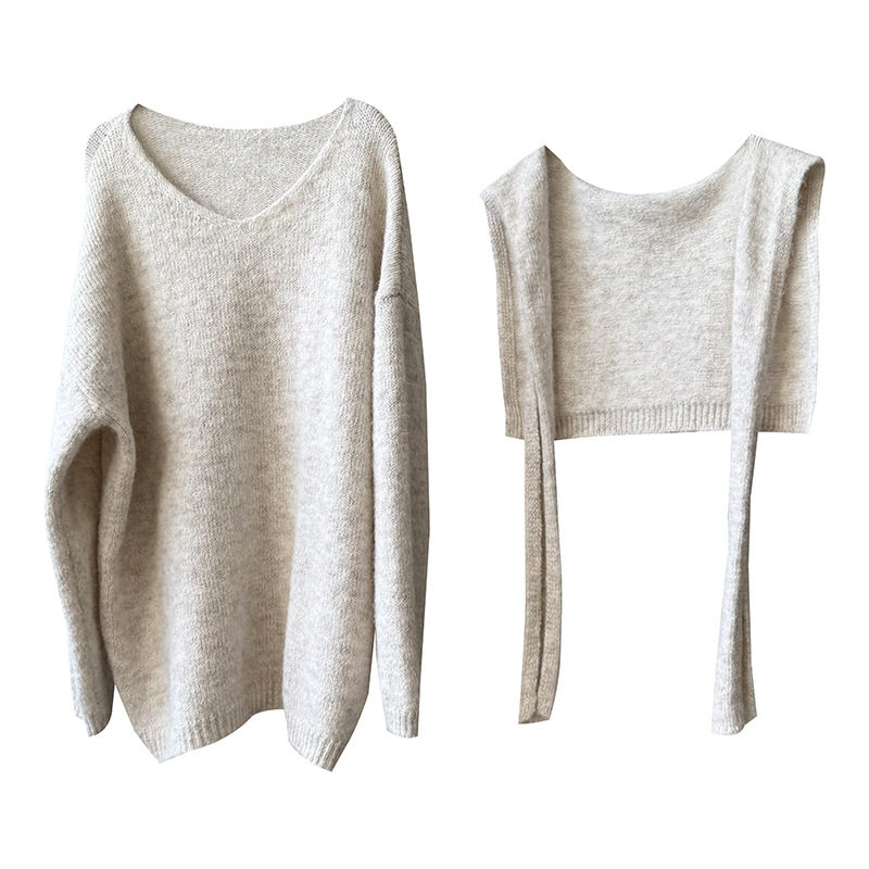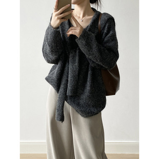 上衣 慵懒风宽松针织衫 高级感绿色V领毛衣女披肩两件套秋冬季 新款