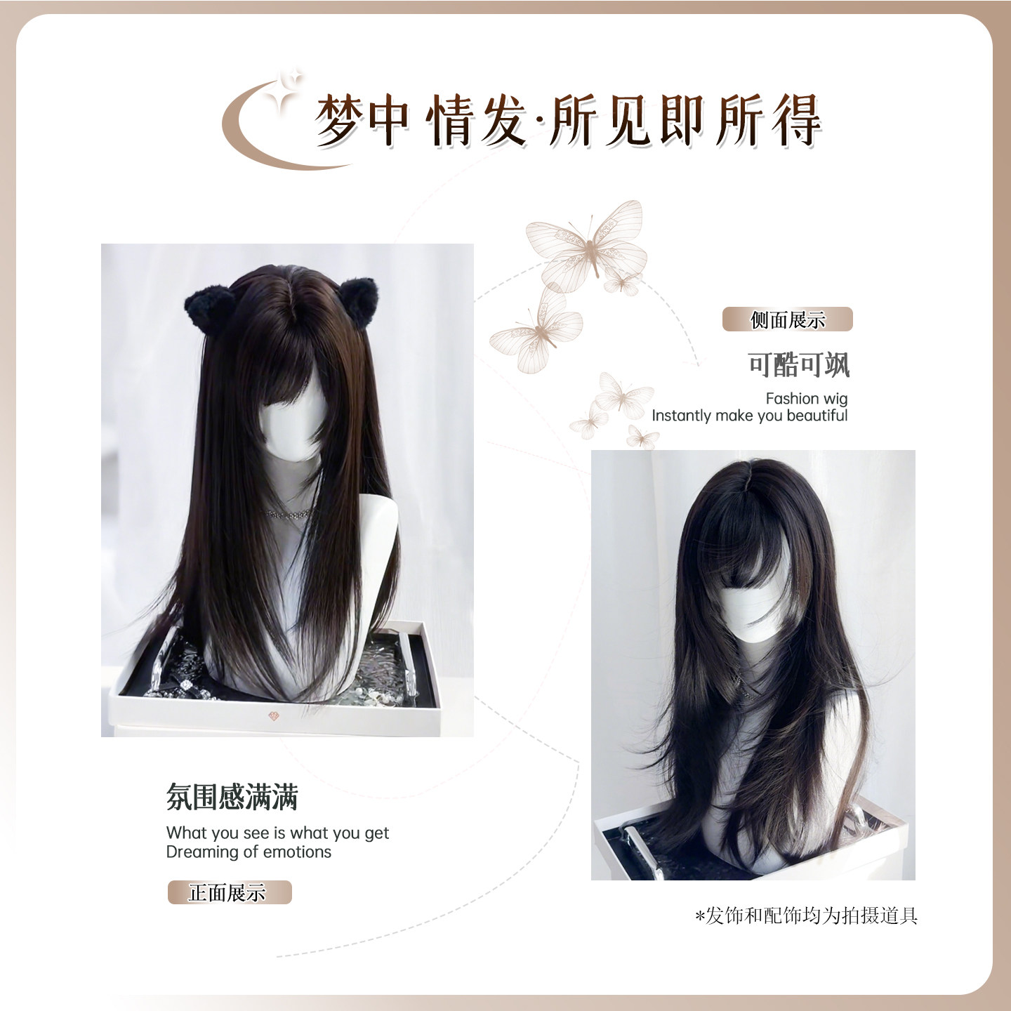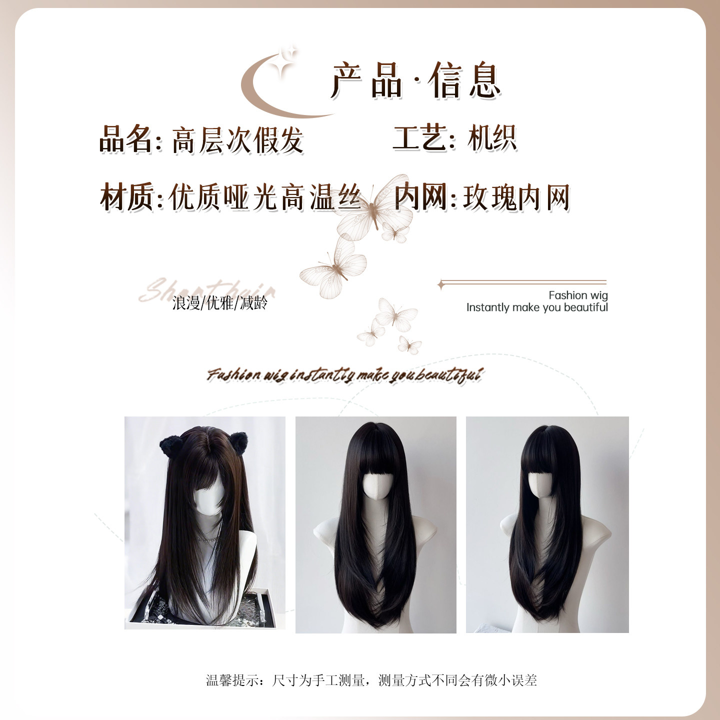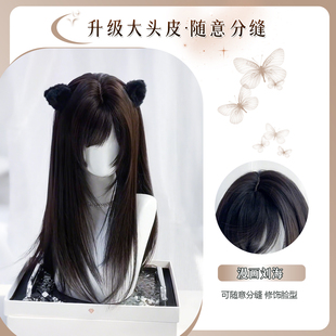 假发女高层次黑长直发长发日常黑色齐刘海全头套女jk 日系卷带