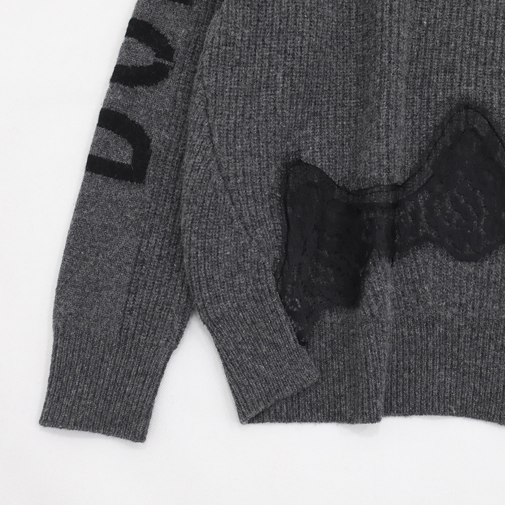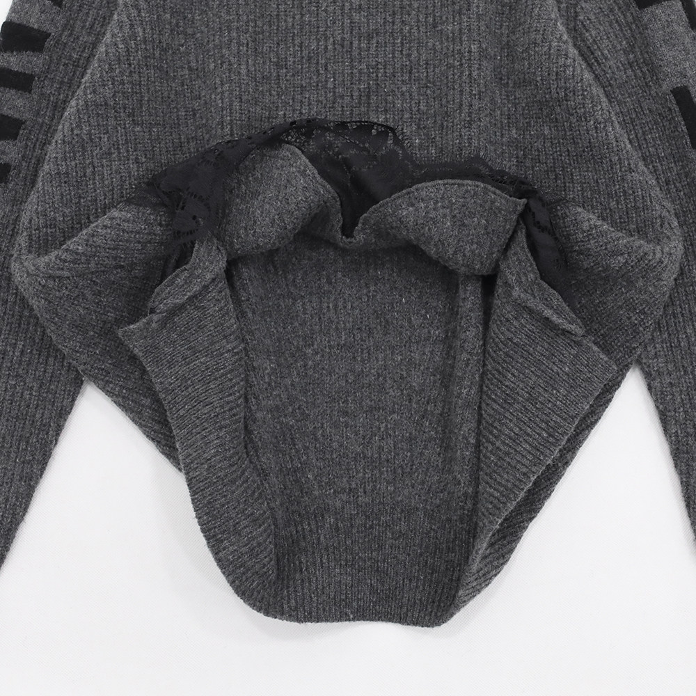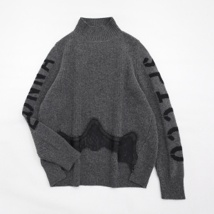 原299 字母点缀前短后长前身底边蕾丝拼接高品质针织上衣 立领衣袖