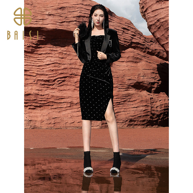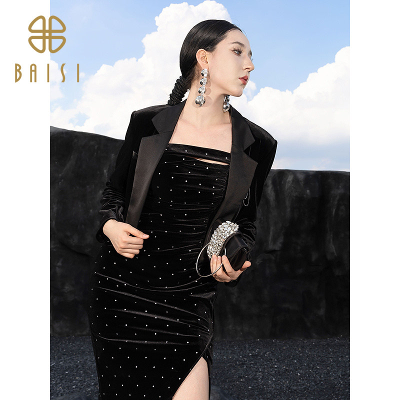 通勤套裙女 百丝静奢风烫钻吊带连衣裙轻职场魅力西装 2025冬季 新品