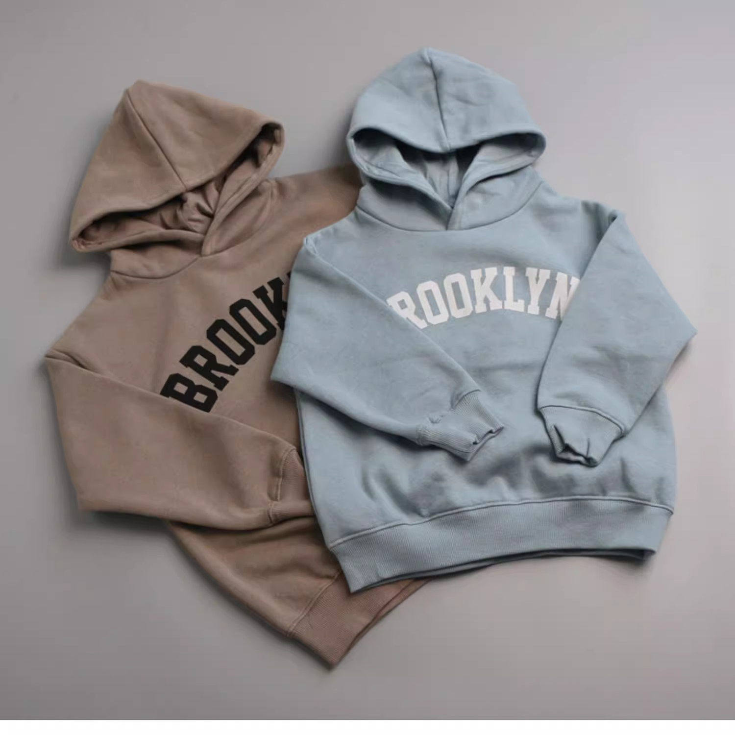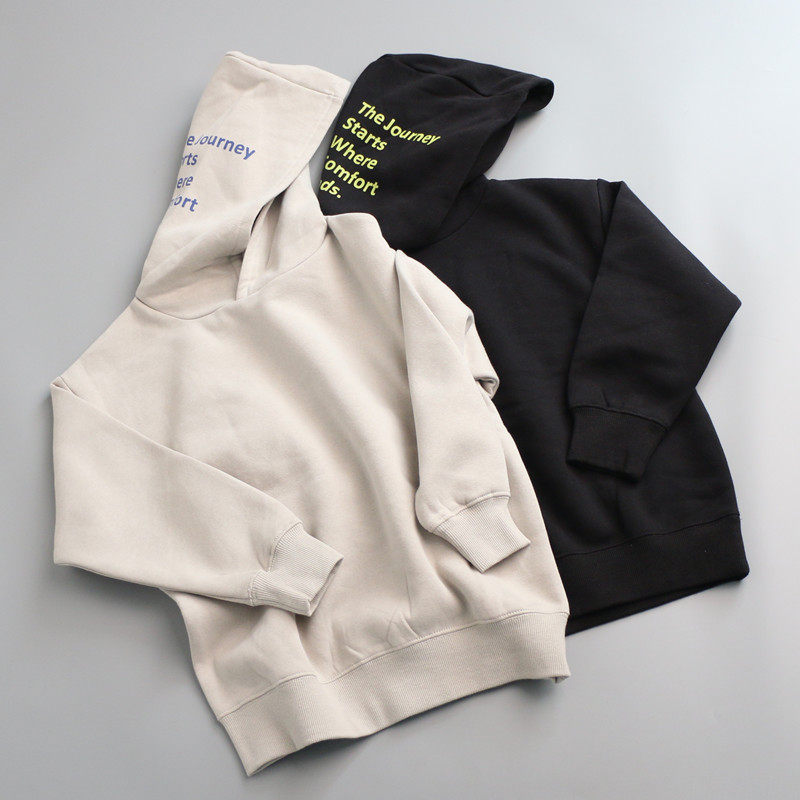 儿童秋冬薄绒连帽卫衣男女宝宝日系休闲多色套头外套100 160叠穿