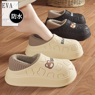 男款 防水棉拖鞋 保暖2025棉鞋 包跟室内居家厚底910月子鞋 女士冬季
