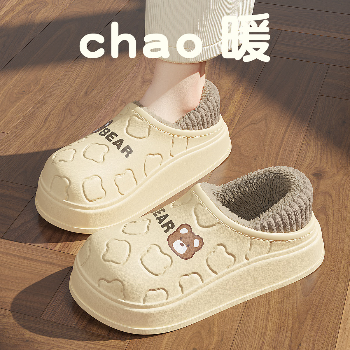 居家防滑保暖加绒雪地靴包跟棉鞋 冬季 男外穿 女2025新款 包跟棉拖鞋
