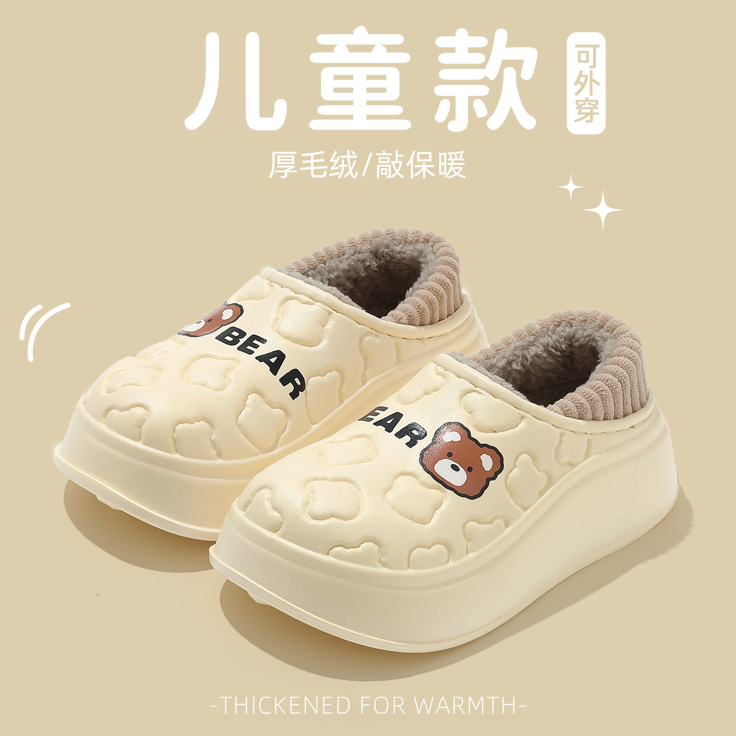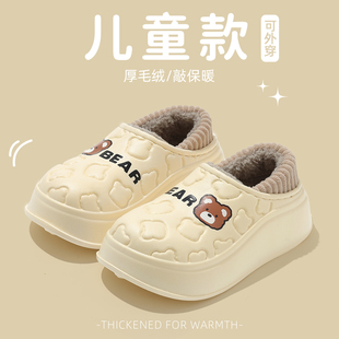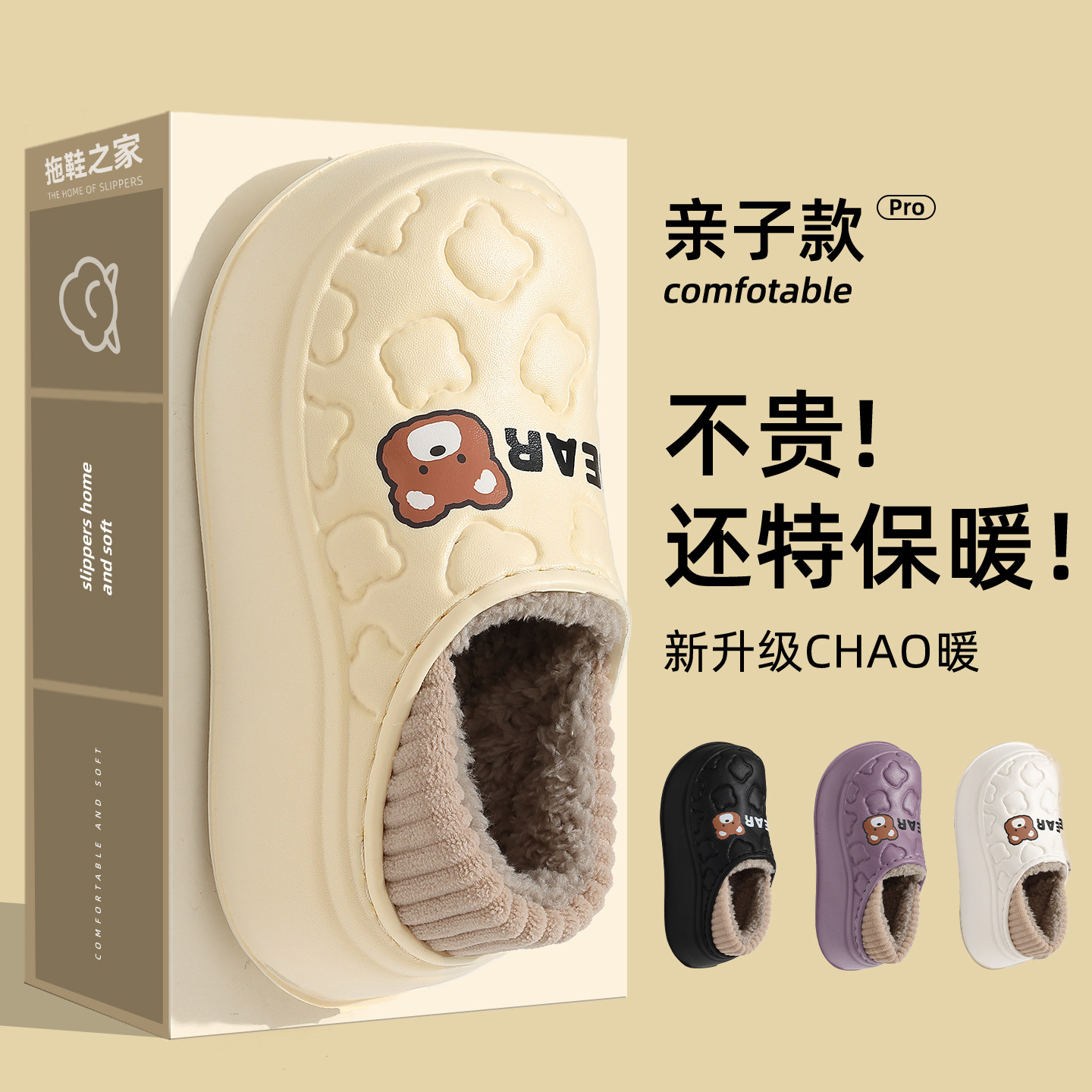 女童 男童包跟居家室内防滑踩屎感厚底加绒亲子棉鞋 儿童棉拖鞋 冬季