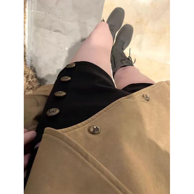 性感对称排列古铜浮雕金属扣热裤 女秋冬新款 休闲短裤 黑色低腰修身