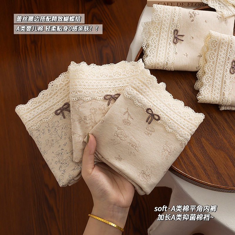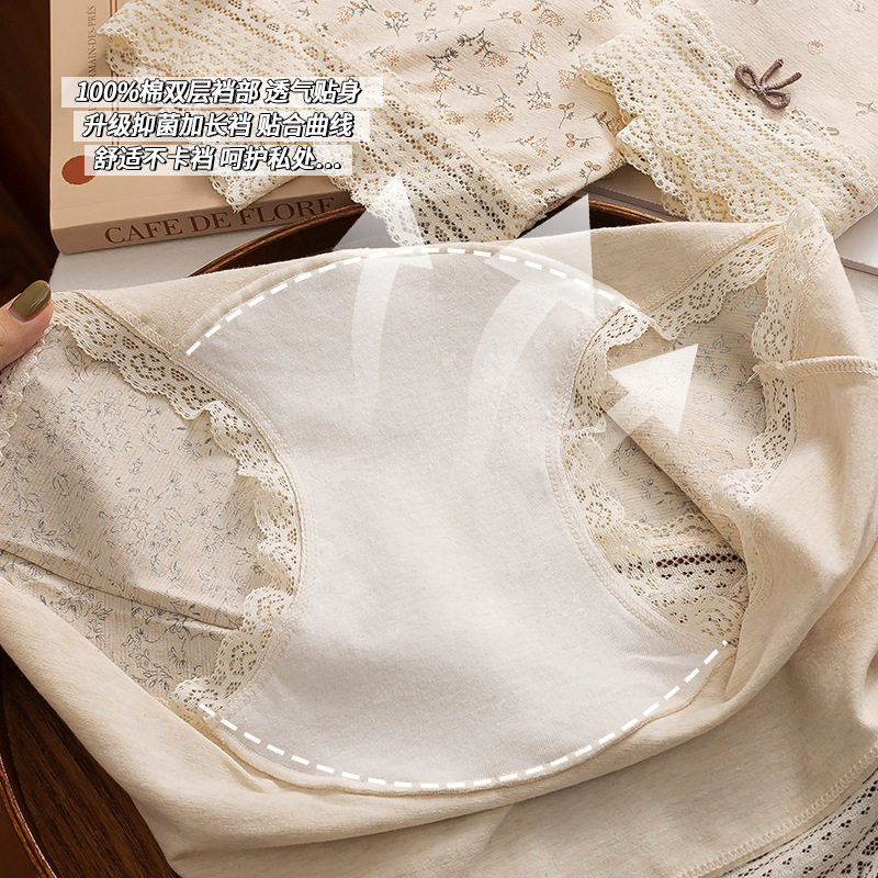甜美ins风少女平角裤 都市丽人蕾丝碎花纯棉内裤 女10A级抑菌大码