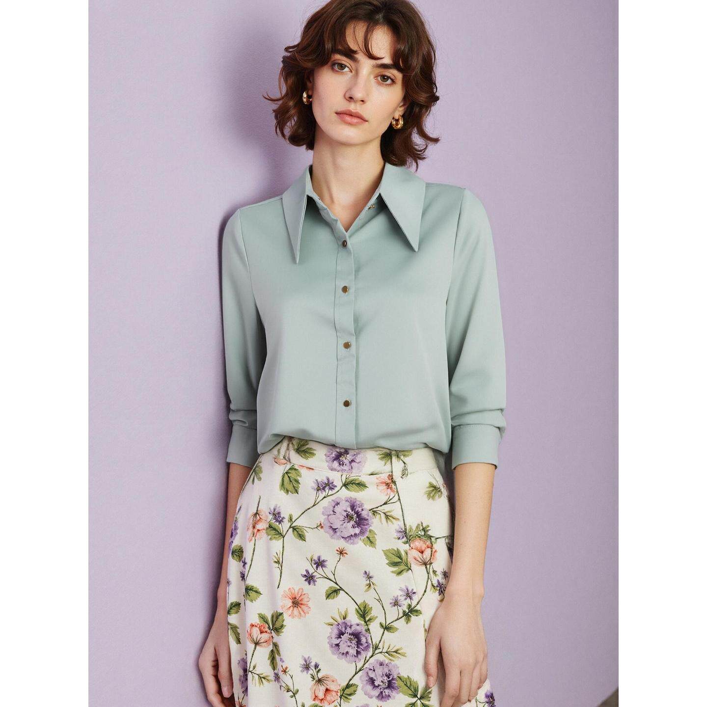 House 内搭打底衫 百家好高级香槟色缎面衬衫 新款 女2026春季 Basic