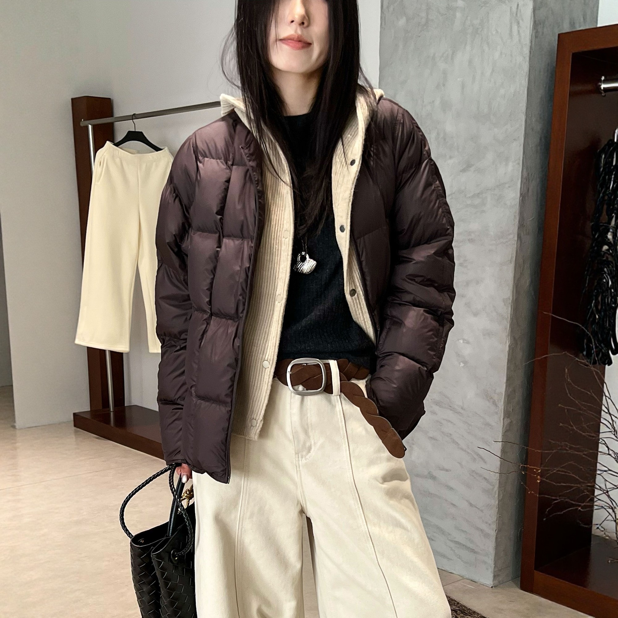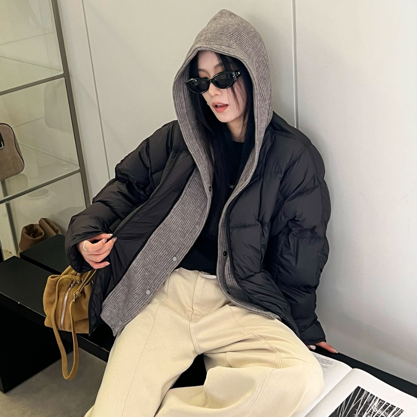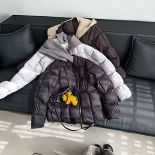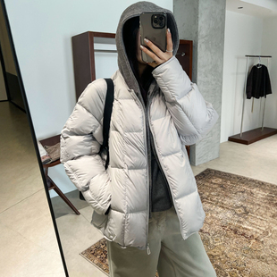 面包服外套潮 欧货女装 假两件针织连帽羽绒服女欧洲站2025冬装 新款