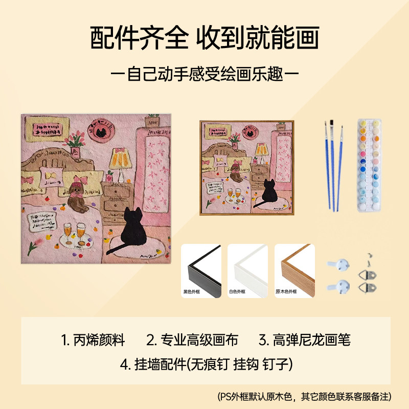 小猫生活日记DIY数字油画 饰画 高清喷绘多巴胺温馨治愈解压卧室装