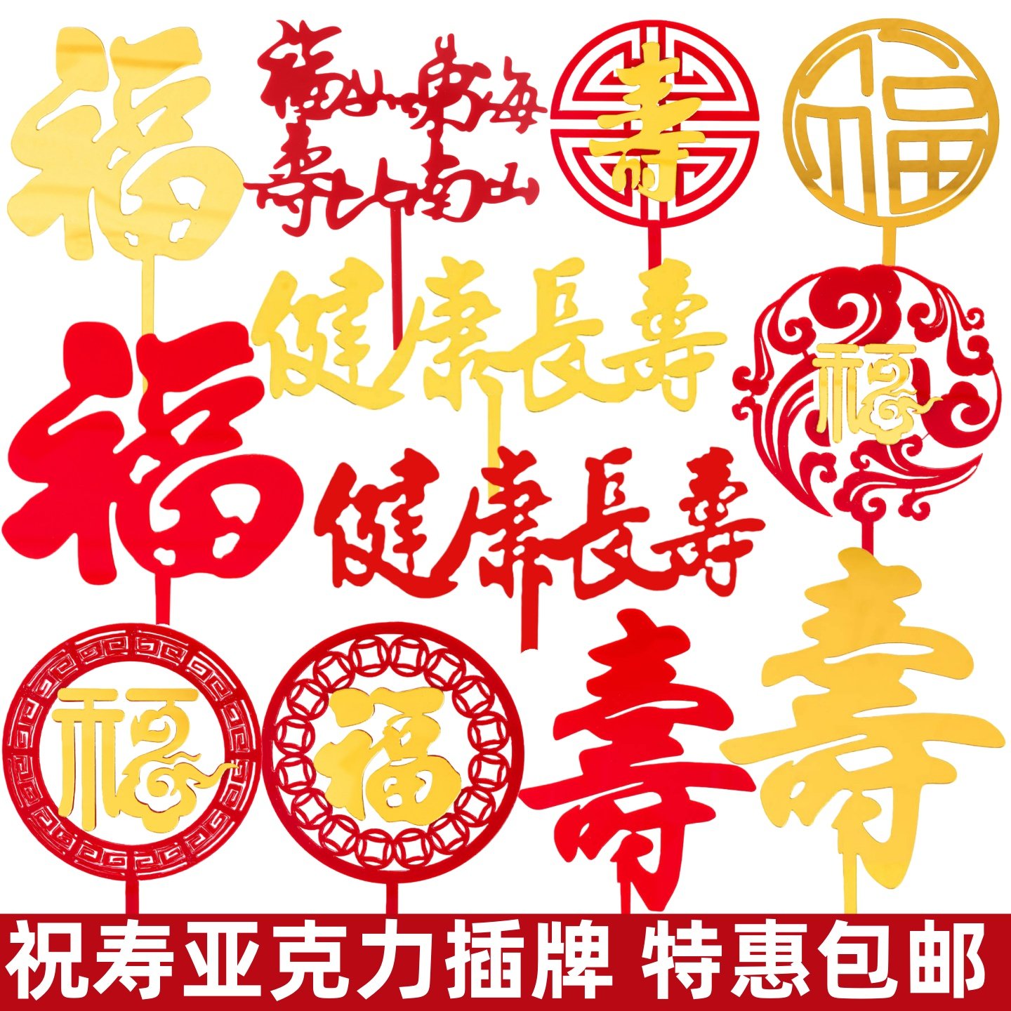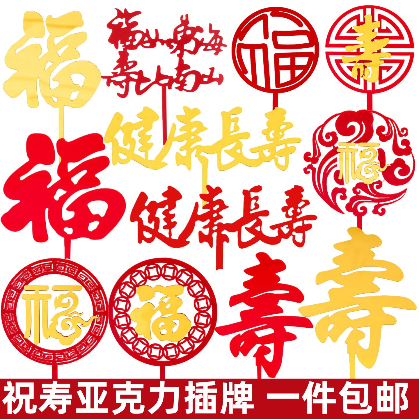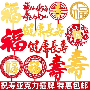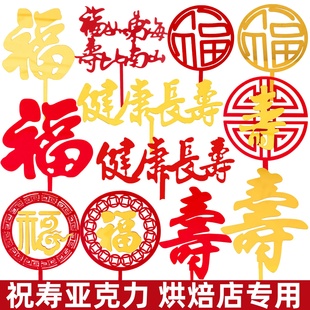 福寿双层亚克力插牌祝寿蛋糕装 饰插件中国风红色福字寿字生日摆件