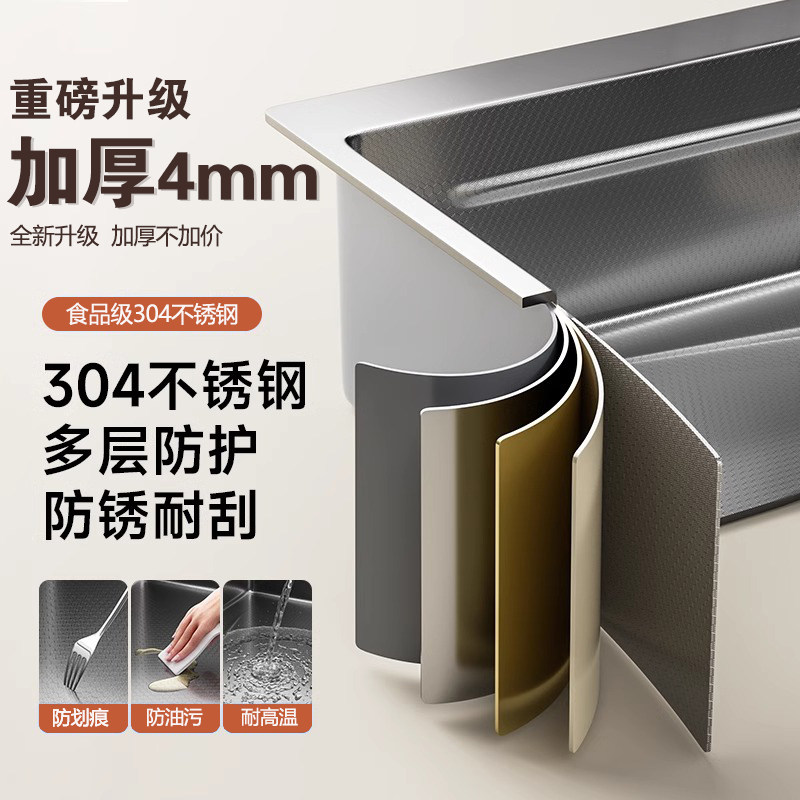 JOMOW厨房水槽大单槽蜂窝加厚SUS304不锈钢洗菜盆碗池台上中下盆